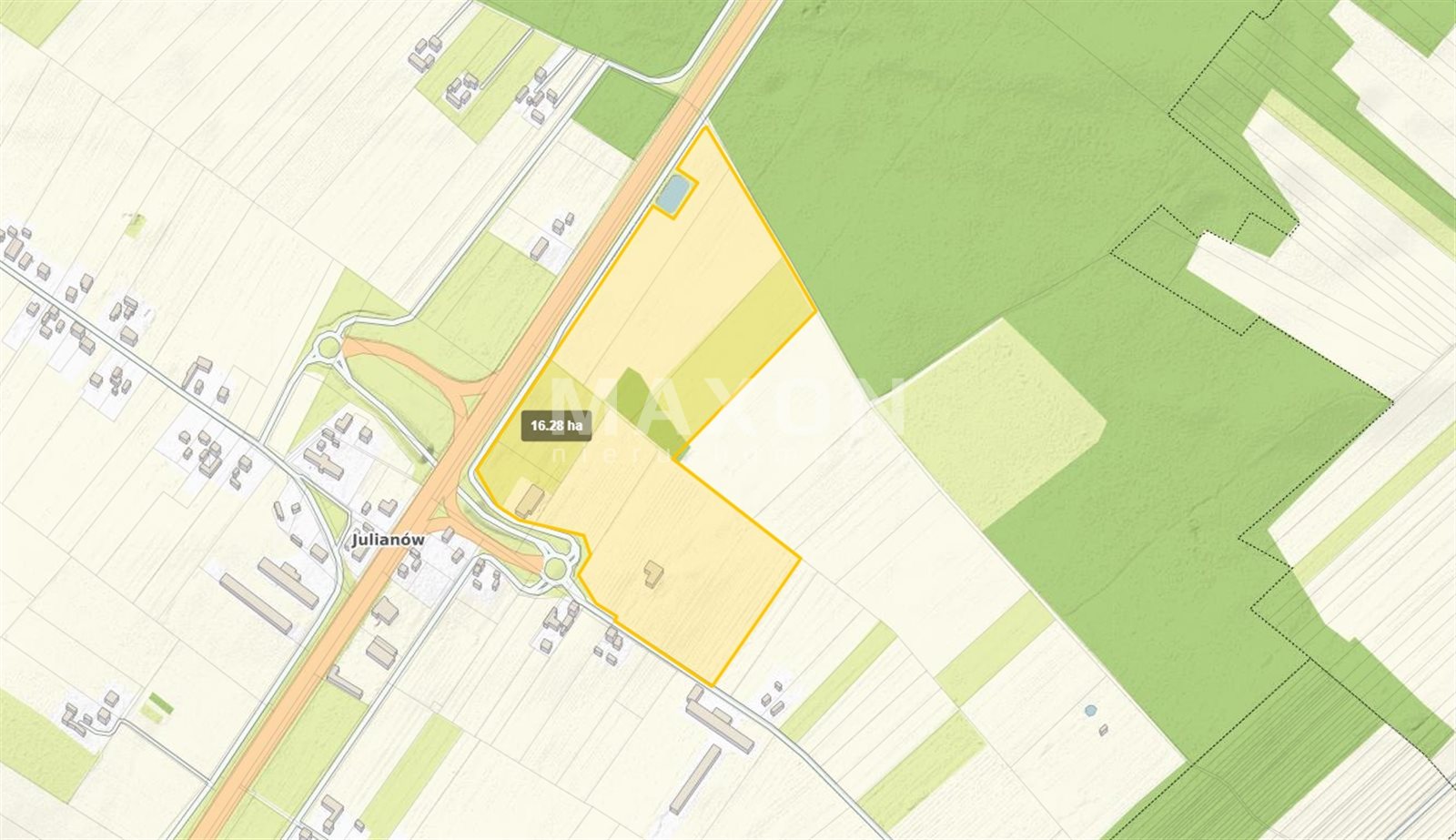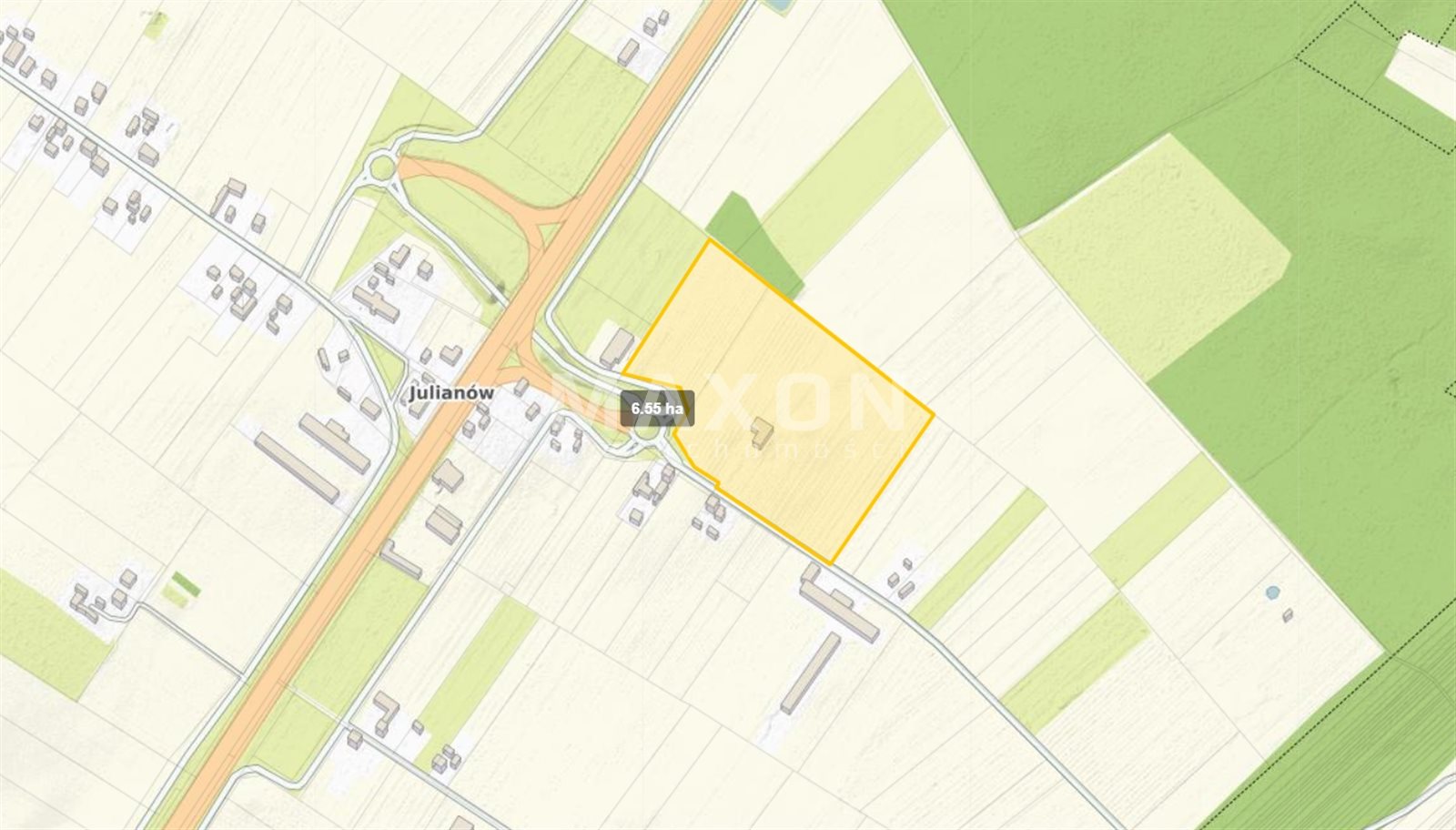 Przedstawiam Państwu atrakcyjny grunt inwestycyjny położony przy zjeździe z trasy S8 węzeł Julianów o pow. 6,5507 ha.