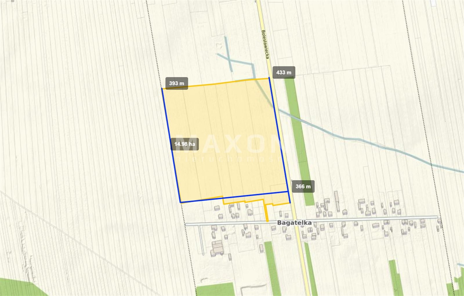Mam przyjemność przedstawić Państwu atrakcyjny grunt inwestycyjny o powierzchni 14.94 ha., położony w miejscowości Bagatelka, w powiecie Wieruszowskim, województwie łódzkim.