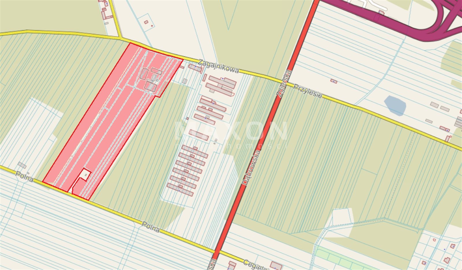 Idealny teren dla Inwestora pod zabudowę przemysłową, w tym hale magazynowe, obiekty produkcyjne, oraz inne obiekty wymagające dużych przestrzeni. Na działce znajduje się budynek magazynowy o powierzchni 2 000 mkw. oraz budynek biurowo-socjalny o powierzchni 700 mkw.