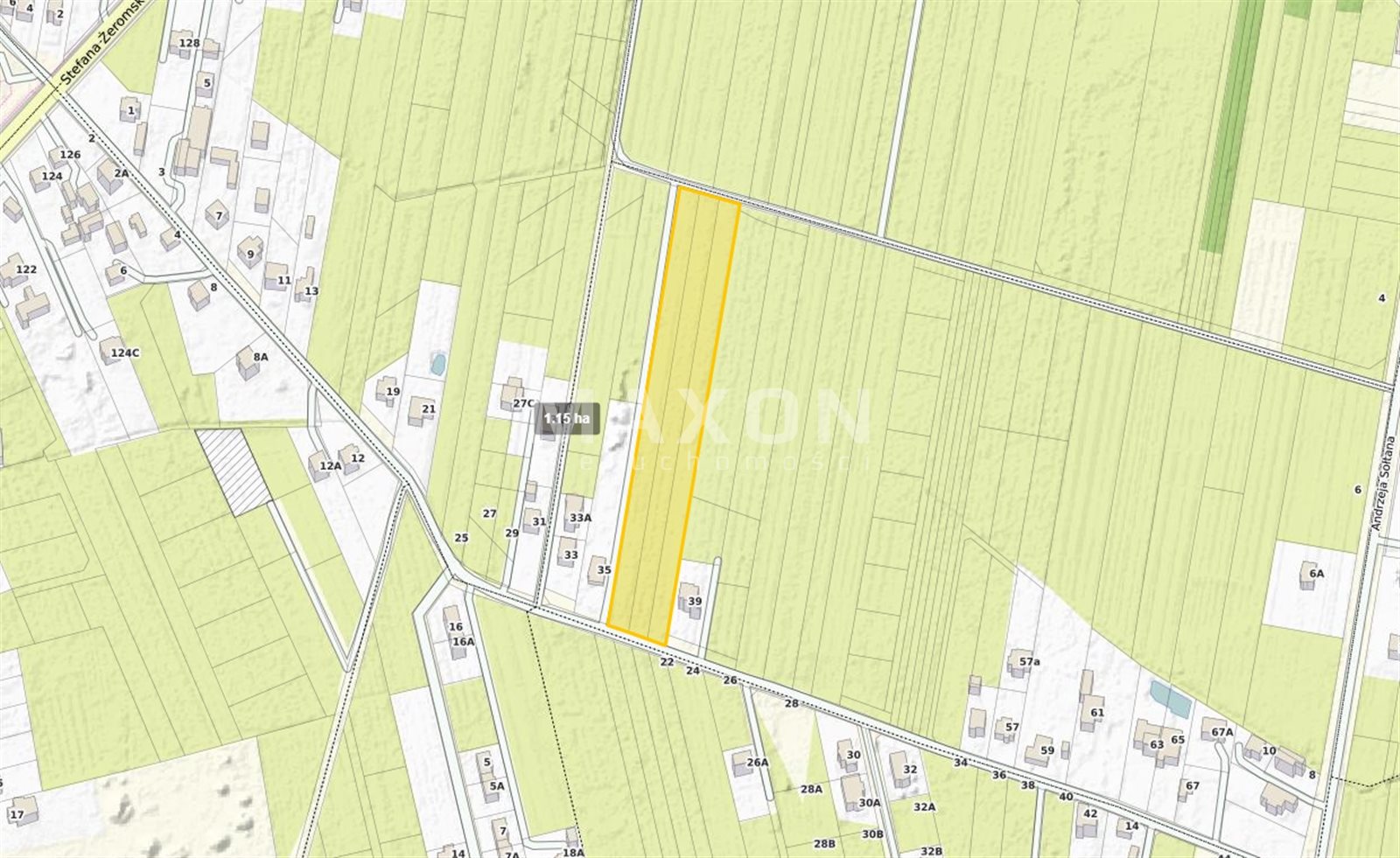 - Minimalna powierzchnia nowo wydzielonych działek budowlanych: 500 mkw.,