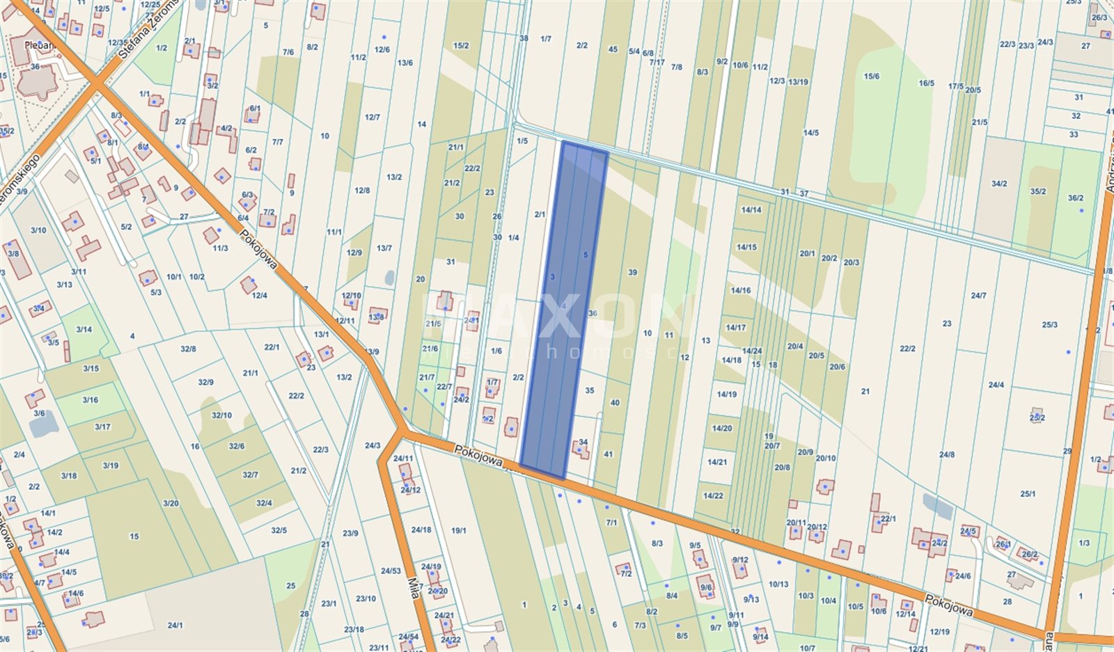 Na sprzedaż oferujemy kompleks trzech sąsiadujących ze sobą działek o łącznej powierzchni 1,15 ha, położonych w atrakcyjnej części Otwocka – przy ulicy Pokojowej, w pobliżu ulicy Żeromskiego.