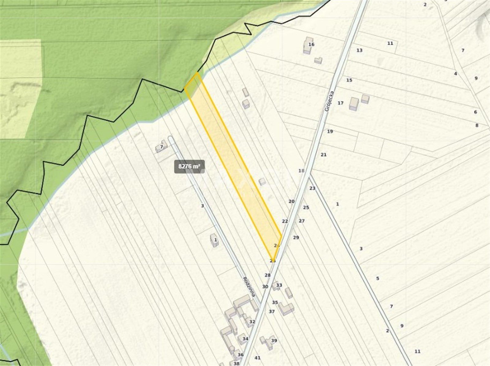 Działka znajduje się w trakcie podziału na mniejsze działki budowlane o powierzchni od 1 200 m². Docelowo planuje się wydzielenie 4–5 działek z wewnętrzną drogą dojazdową. Istnieje możliwość dostosowania wielkości działek do potrzeb klienta – właściciel jest otwarty na współpracę przy podziale.
