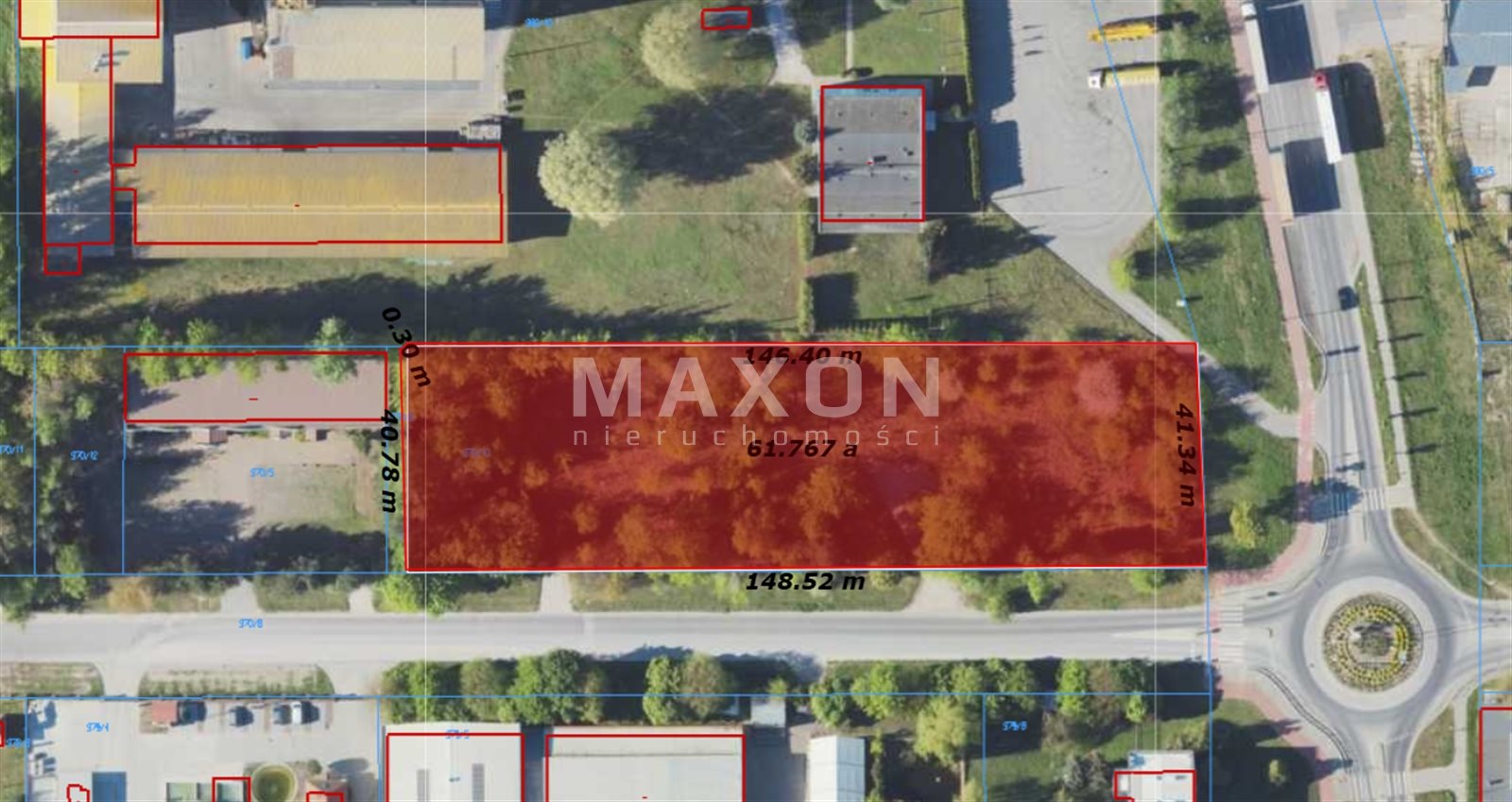 Działka ma regularny kształt, jest płaska i posiada dogodny dostęp do drogi publicznej z dwoma wjazdami. Na działce znajdują się media – energia elektryczna, woda, kanalizacja i gaz – co pozwala na szybkie rozpoczęcie procesu inwestycyjnego. Otoczenie nieruchomości stanowią tereny aktywności gospodarczej, dzięki czemu obszar ten rozwija się dynamicznie i sprzyja lokowaniu nowych przedsięwzięć biznesowych.