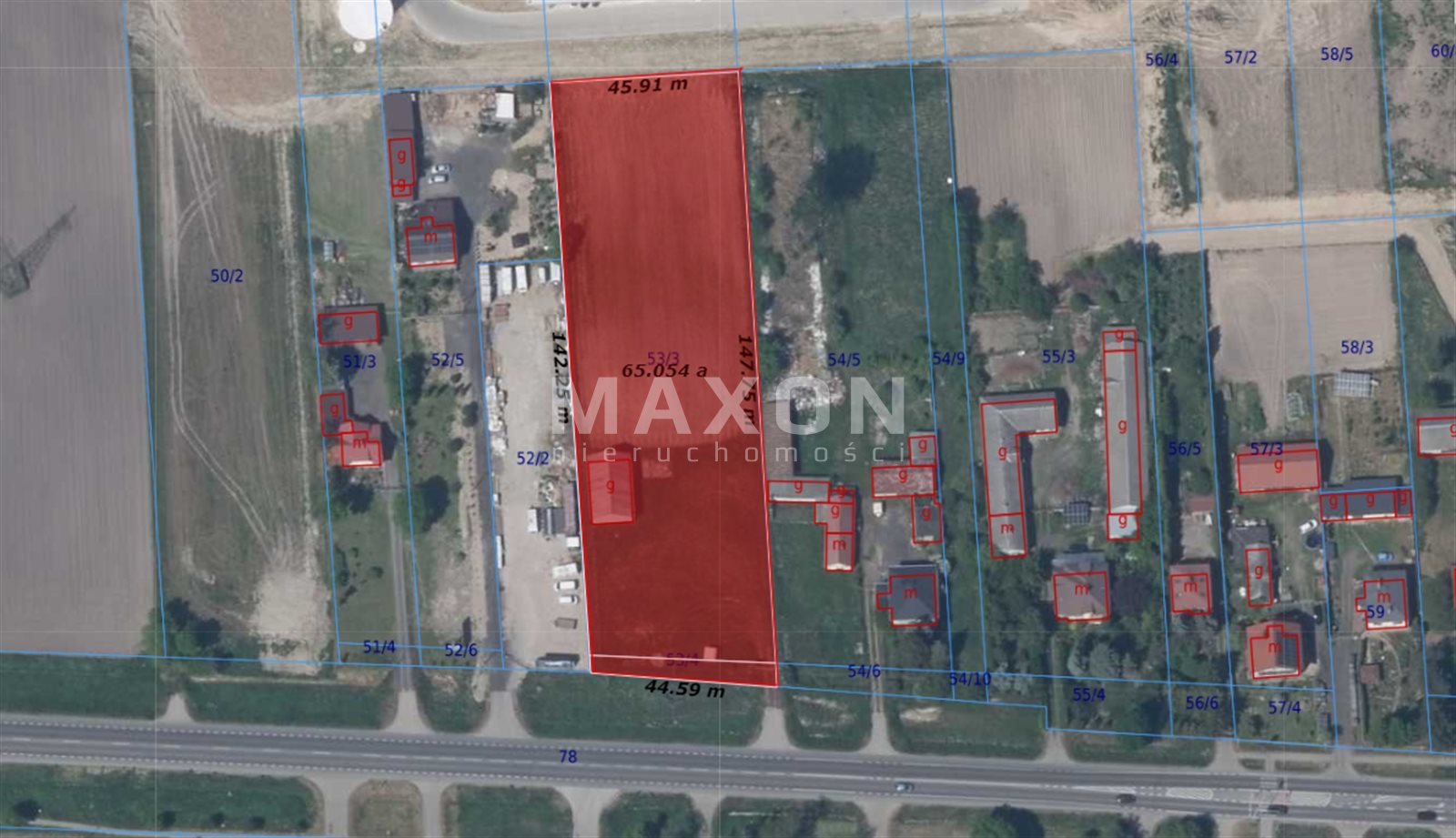 Grunt inwestycyjny znajduje się w pierwszej linii zabudowy przy drodze krajowej z bezpośrednim zjazdem. Jest zabudowany budynkiem gospodarczym. Nieruchomość znajduje się w sąsiedztwie znaczących nieruchomości logistycznych oraz mniejszych firm. Istnieje możliwość połączenia z działką sąsiadującą i podwojenie powierzchni do około 13 tys. mkw.