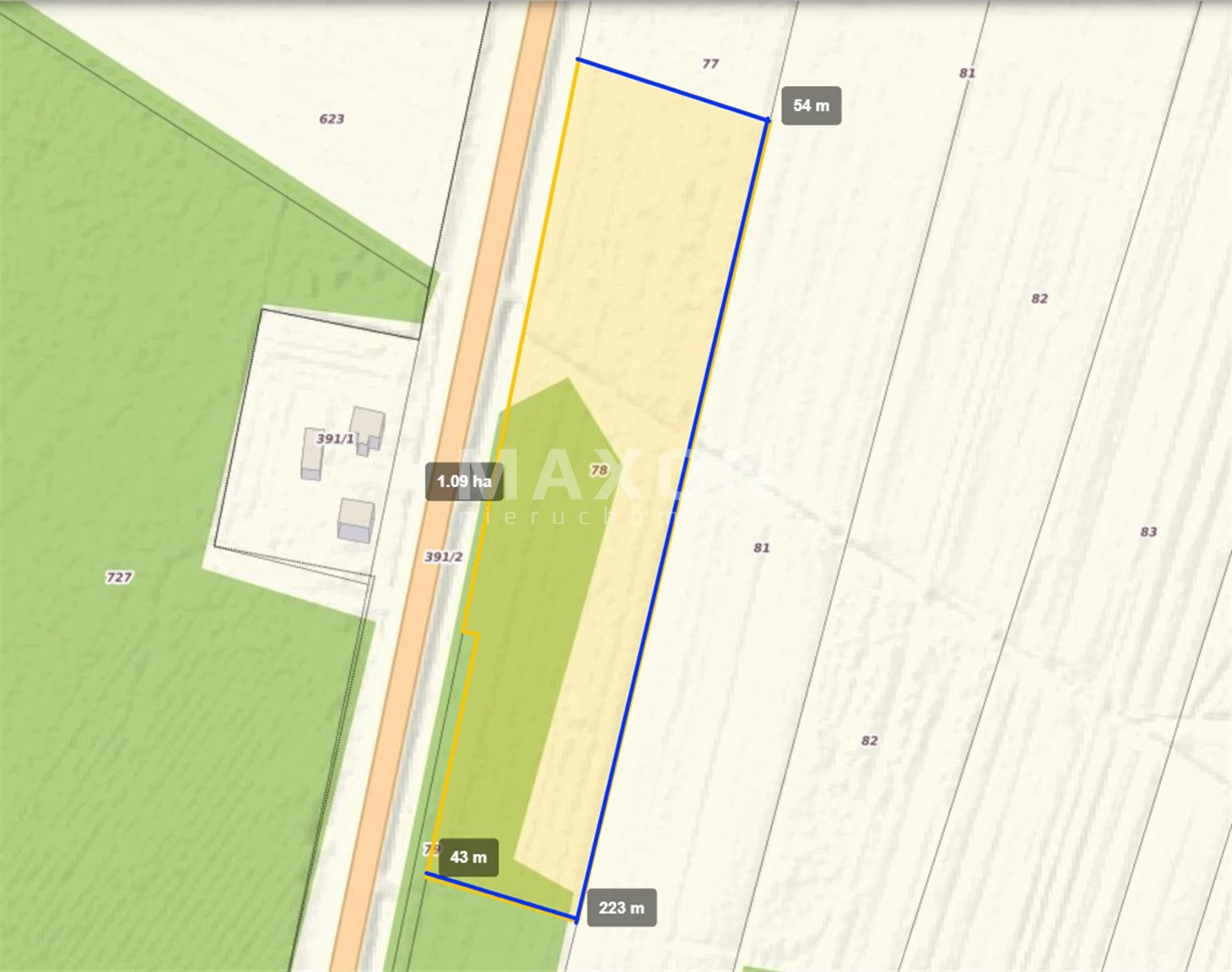 - Powierzchnia: 1,09 ha (z możliwością powiększenia do 3,39 ha),