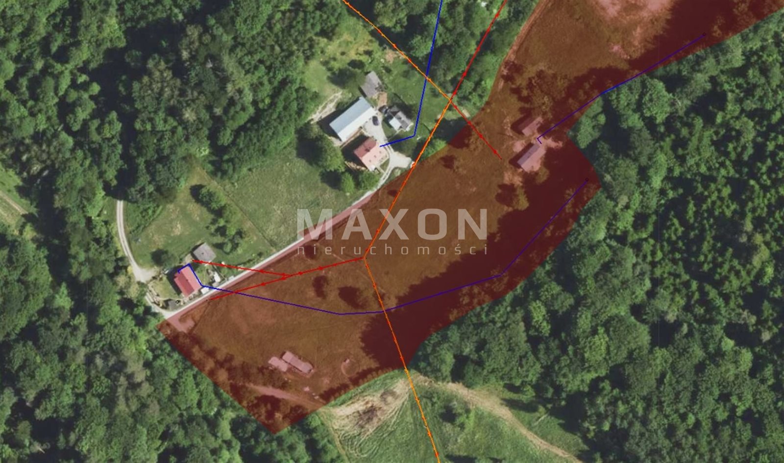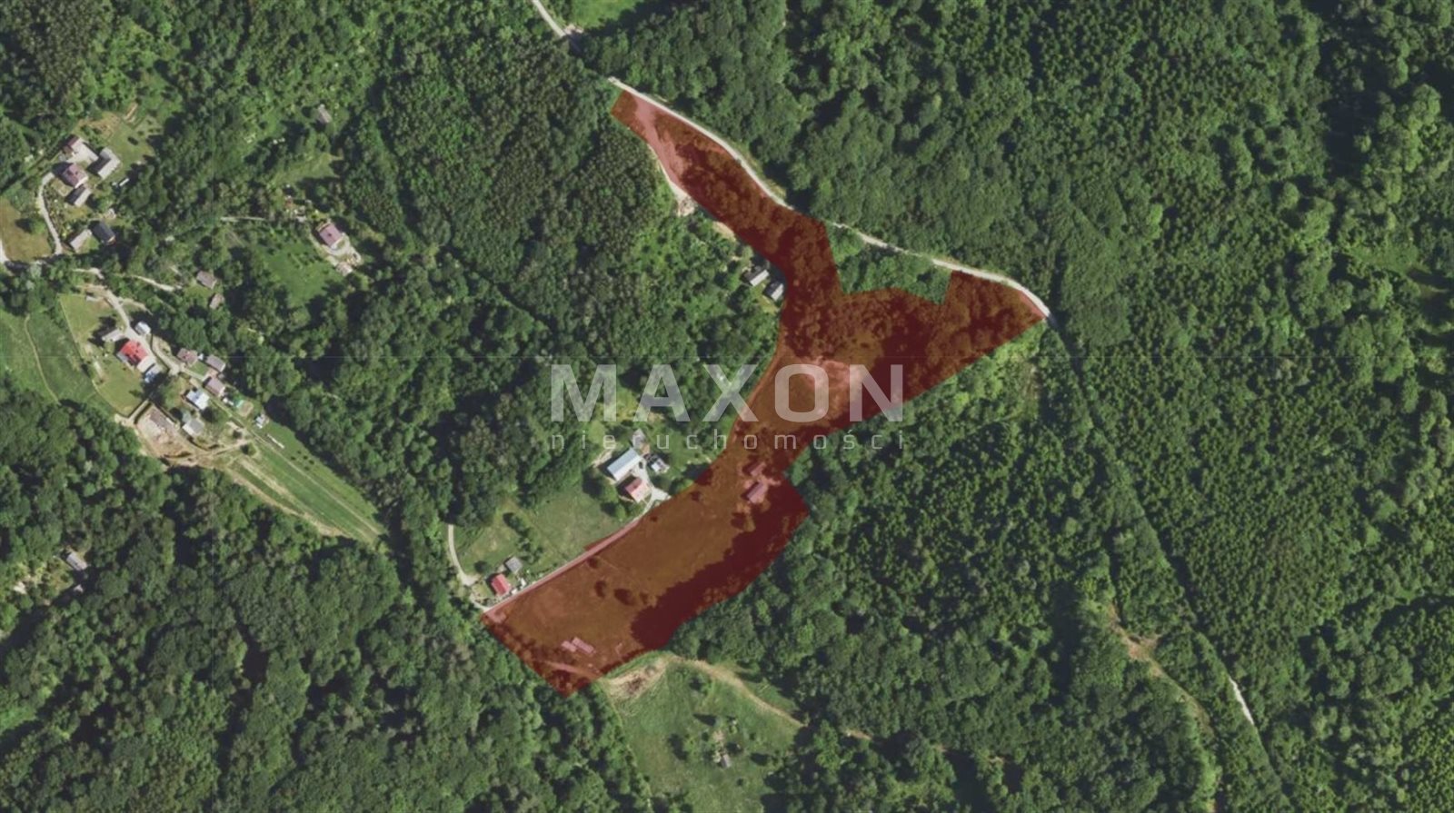 Teren składa się z 6 działek ewidencyjnych o nieregularnym kształcie, przeznaczonych pod zabudowę mieszkaniowo-zagrodową, co daje możliwość elastycznego zagospodarowania gruntu zgodnie z wydanymi warunkami zabudowy. Na jednej z działek znajduje się drewniany dom.