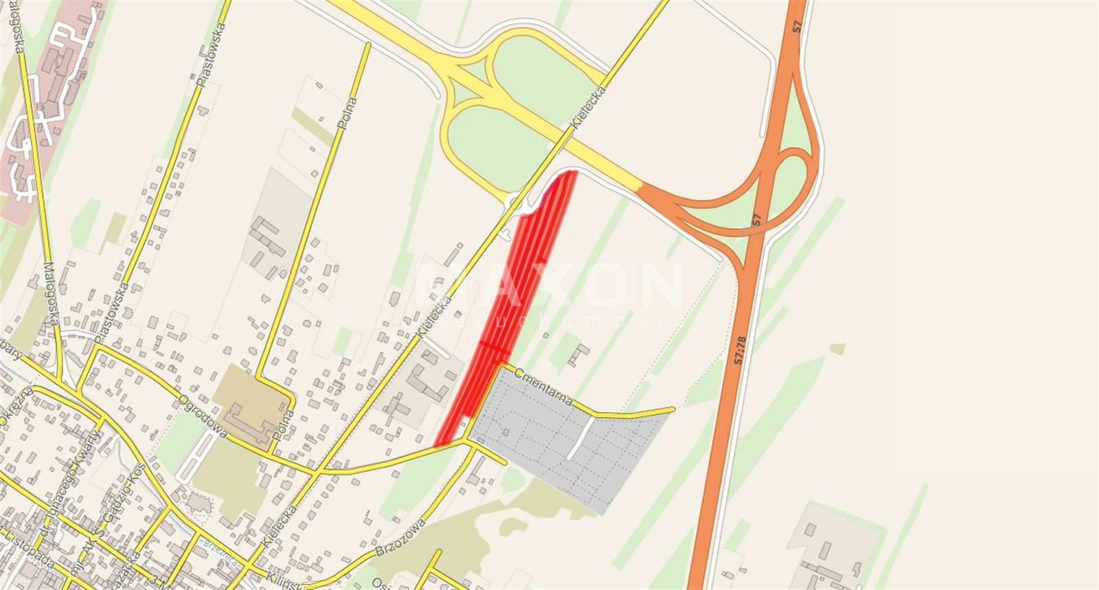 Na sprzedaż grunt inwestycyjny w Jędrzejowie przy ul. Kieleckiej pod obiekty handlowe w tym o powierzchni sprzedaży powyżej 2 000 mkw.