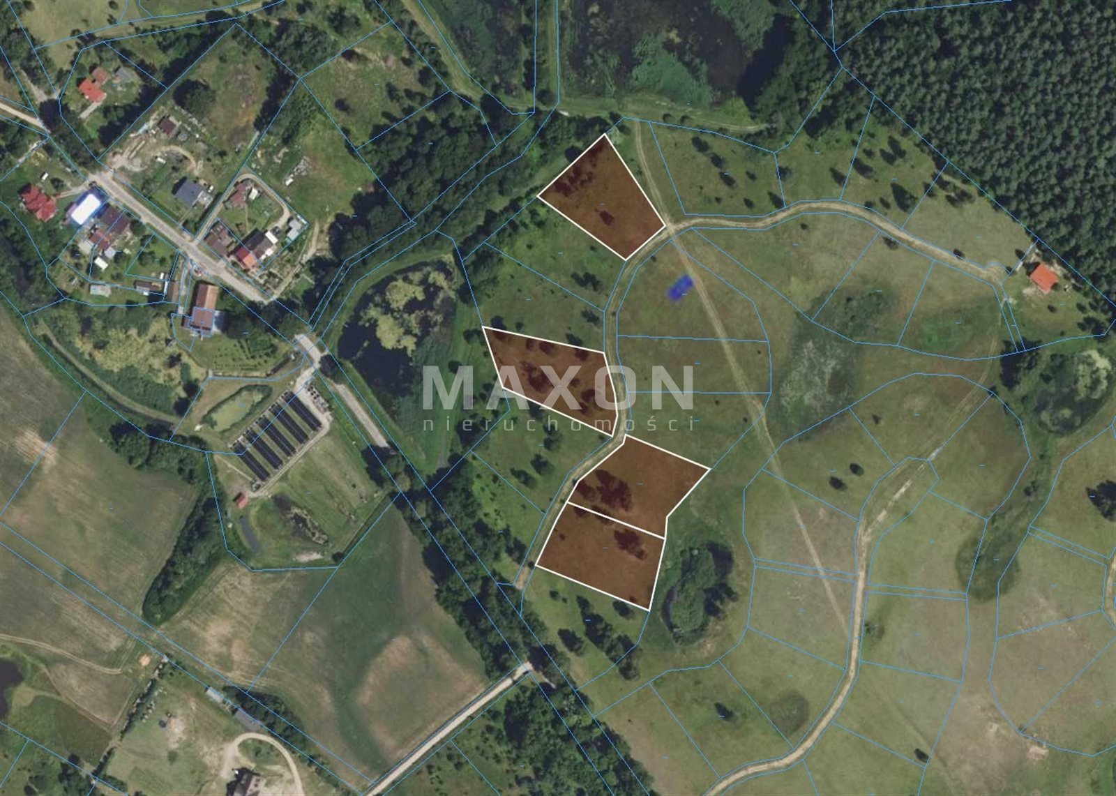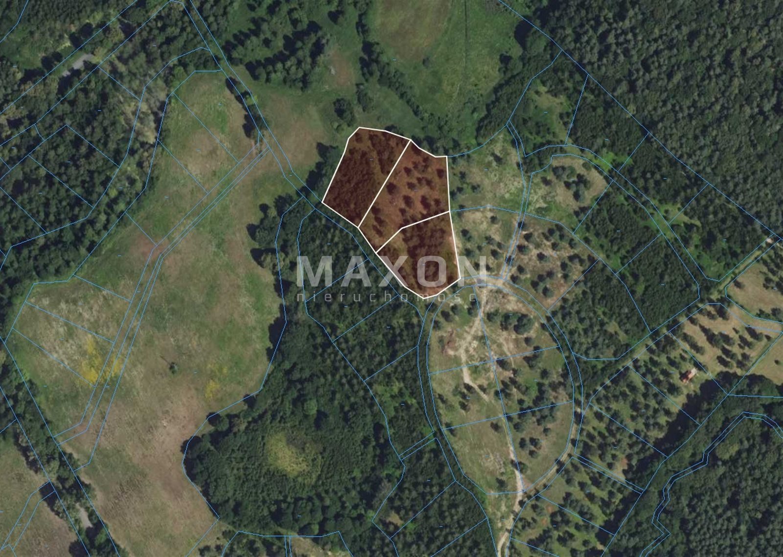 - Minimalna powierzchnia działki: 3 000 mkw. (możliwość wydzielenia trzech działek budowlanych),