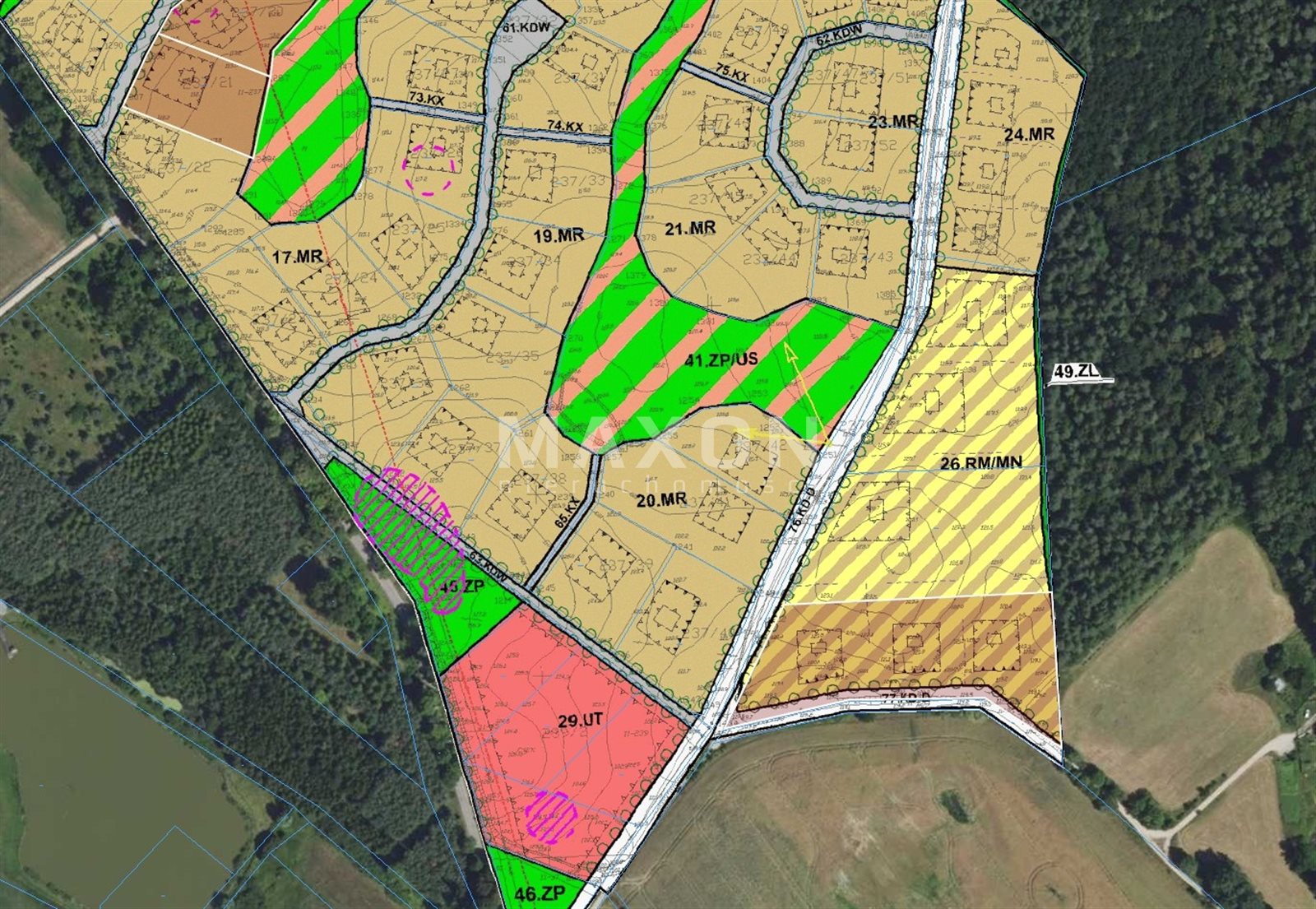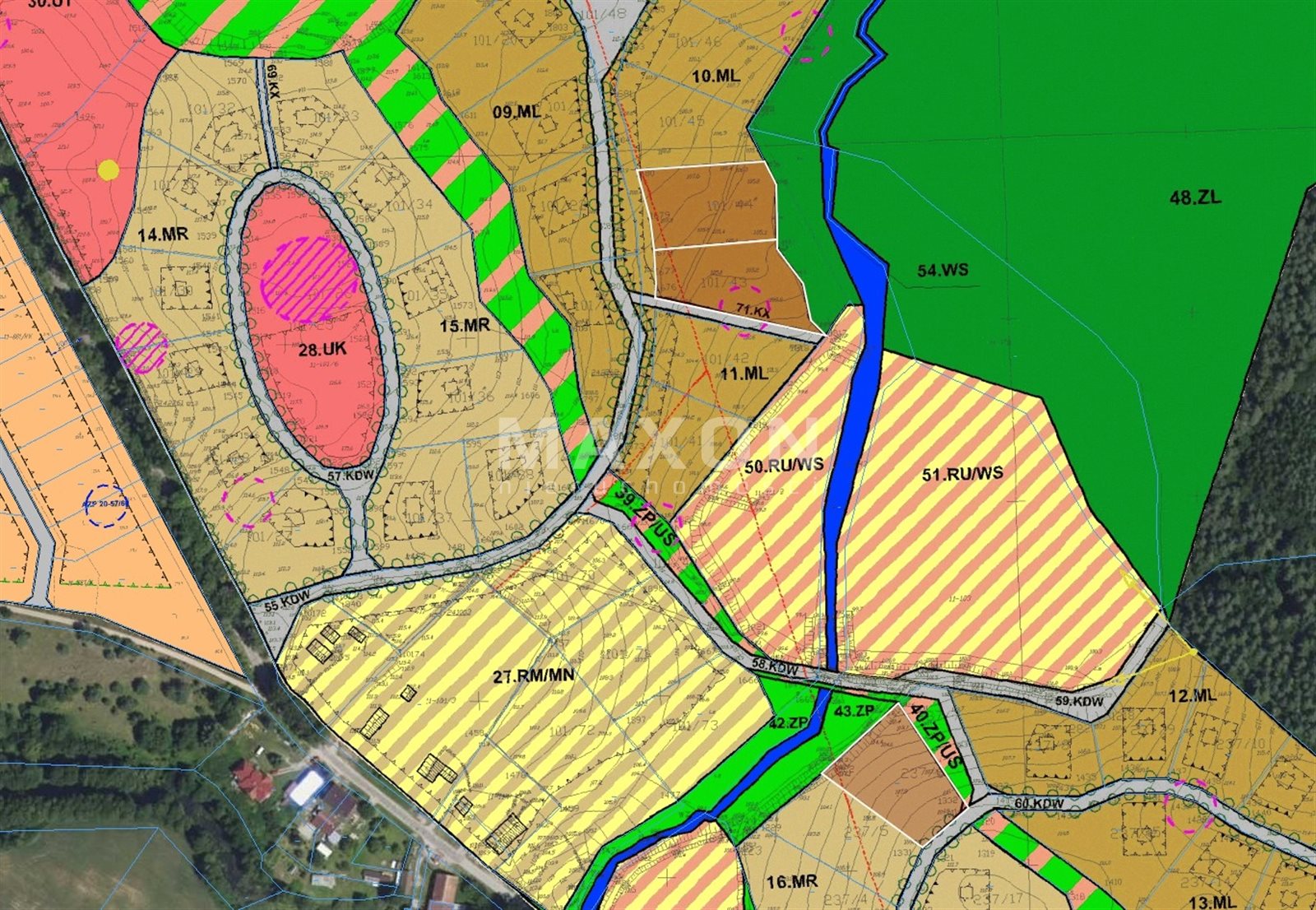 RM/MN - Tereny zabudowy zagrodowej oraz zabudowy mieszkaniowej jednorodzinnej z dopuszczeniem usług.