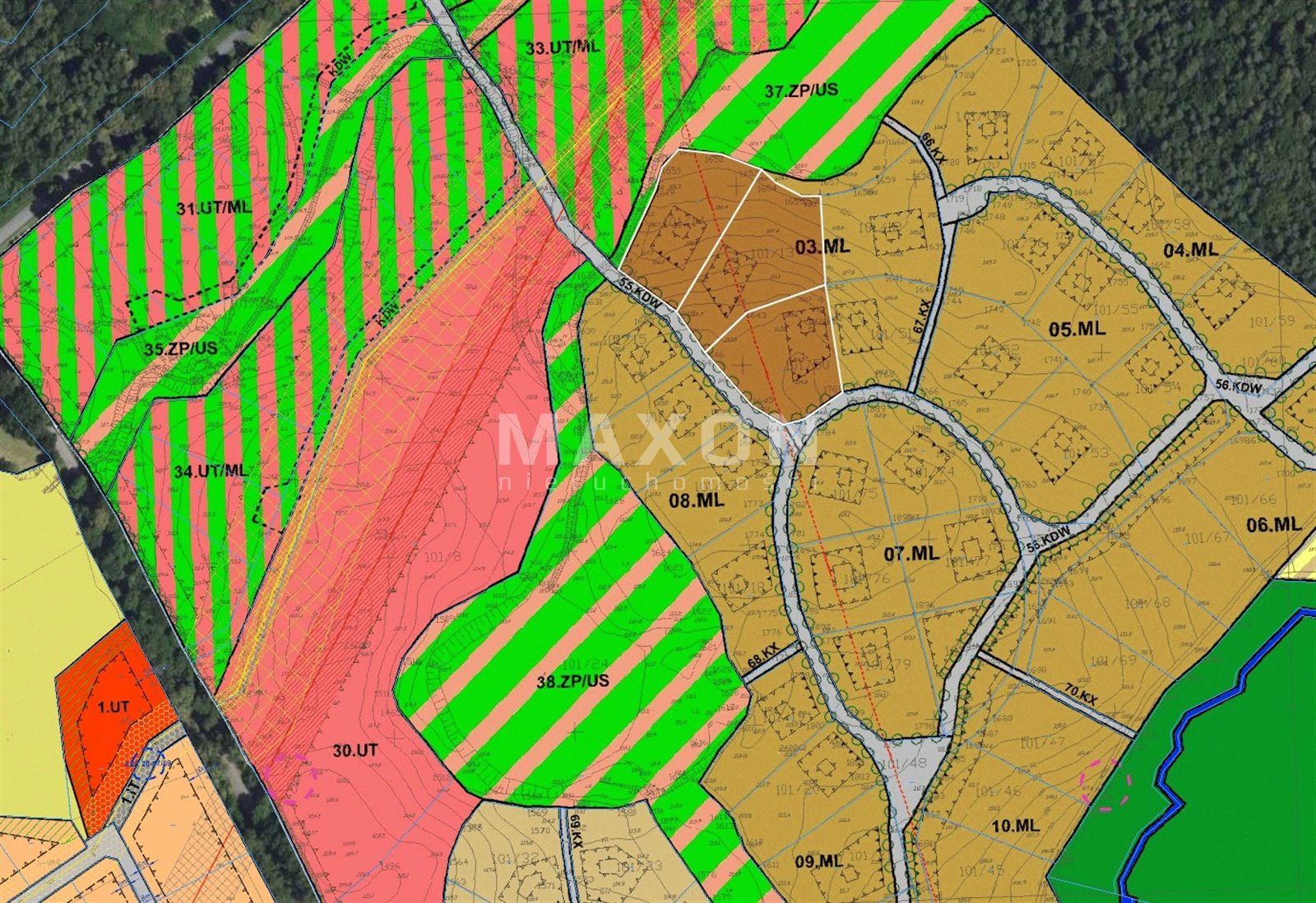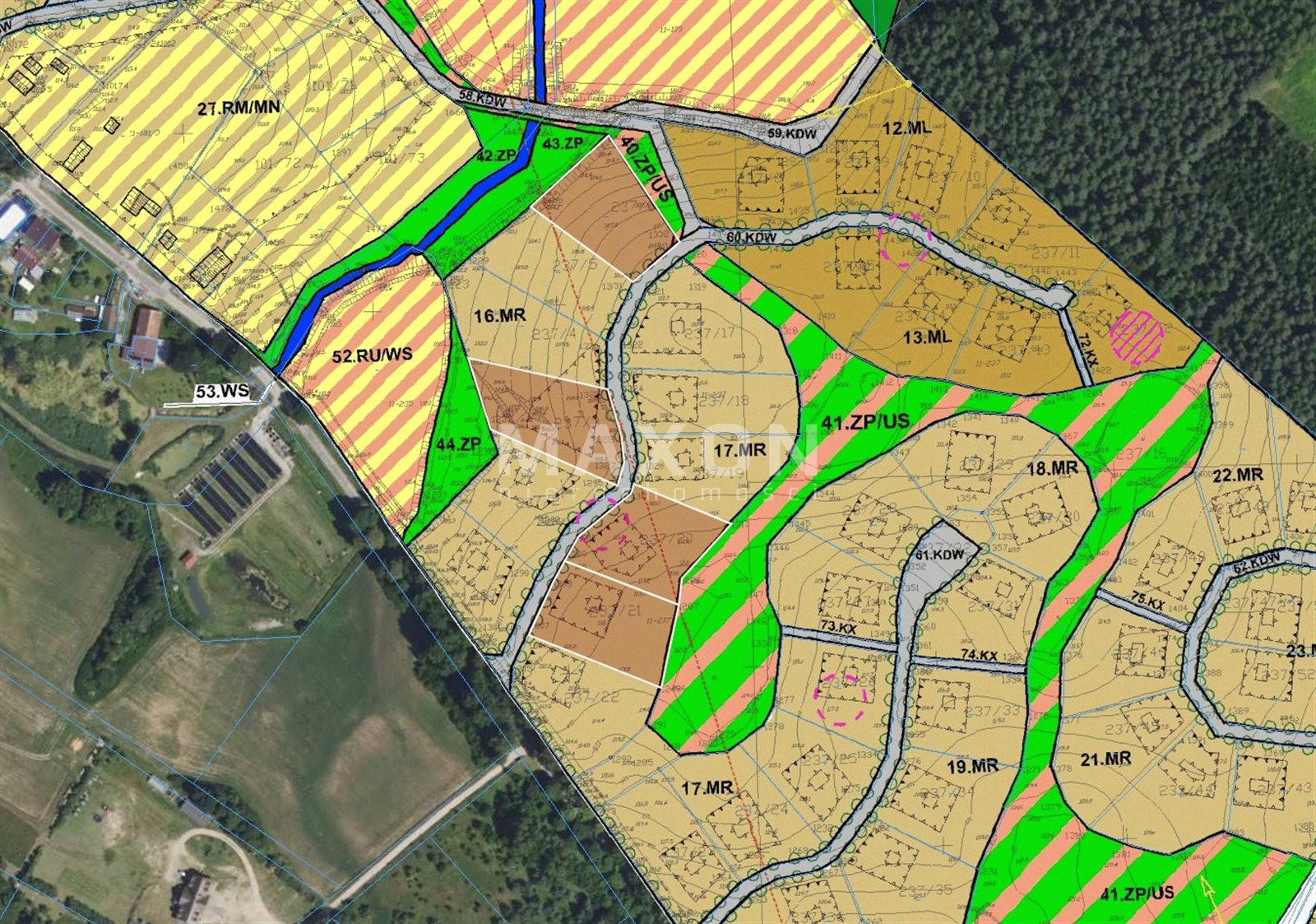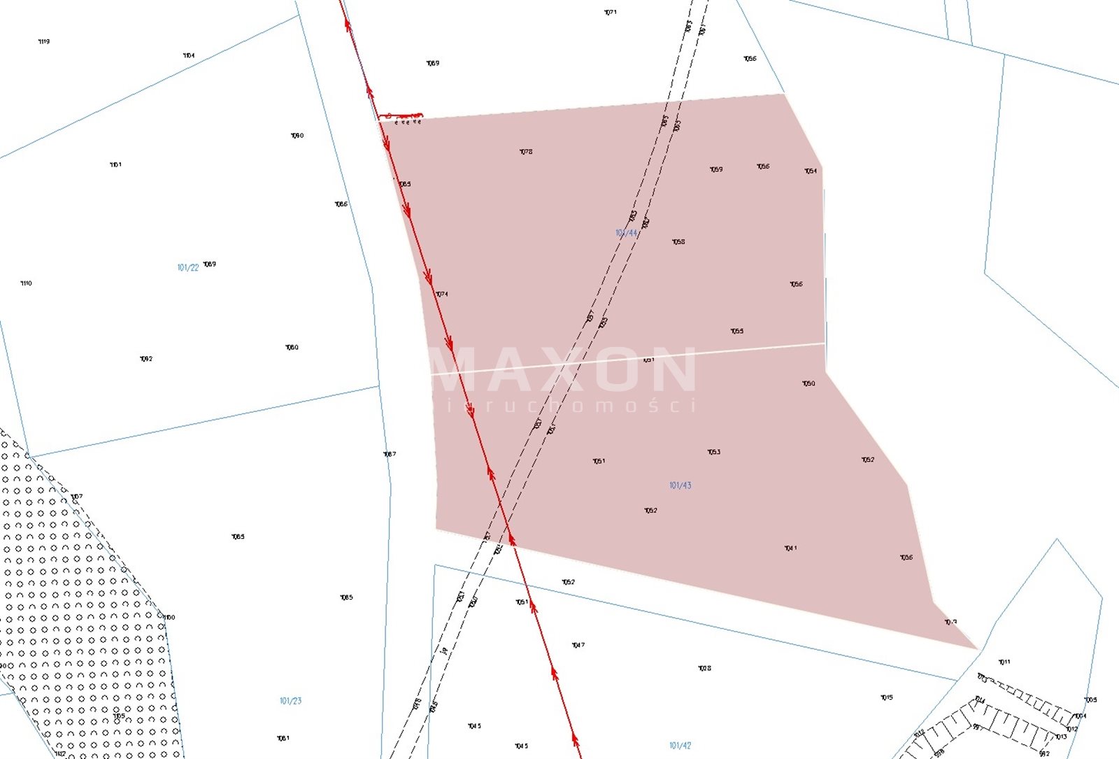 - Numery działek: 101/13, 101/14, 101/43, 101/44, 101/50, 237/3, 237/6, 237/20, 237/21, 238/4,