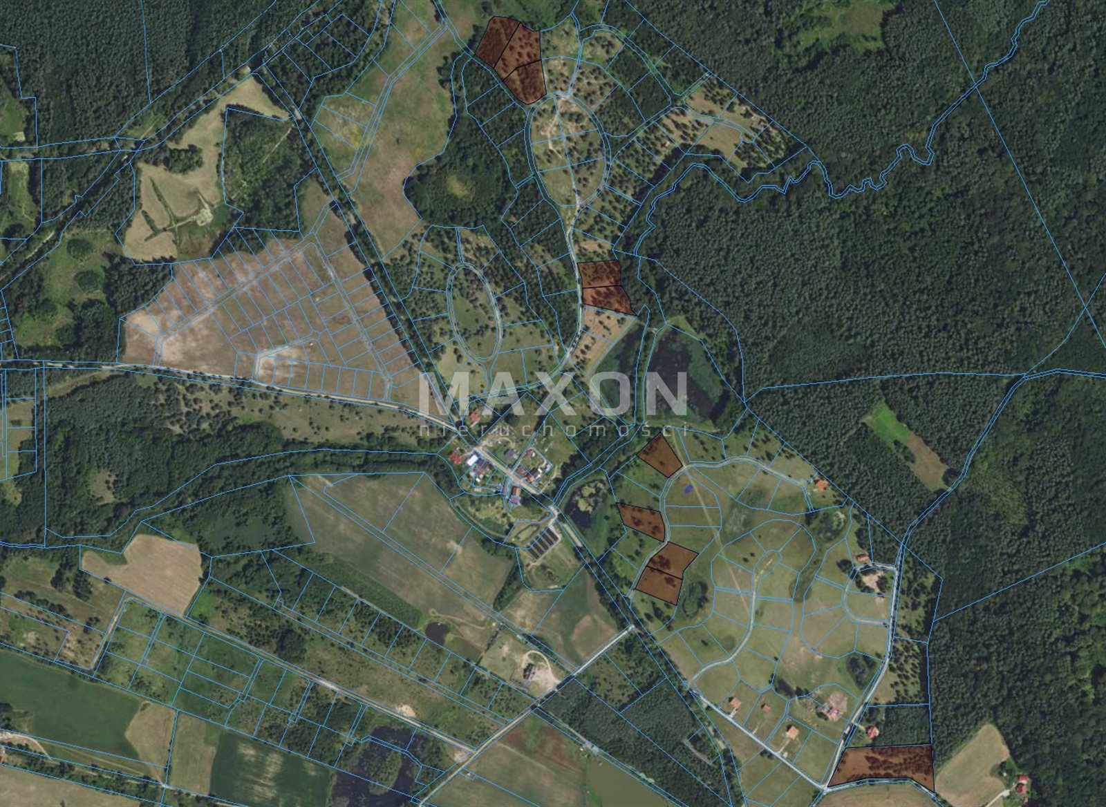 - Ukształtowanie działek: różnorodne, głównie trapezy, teren płaski, łąki i tereny zadrzewione,