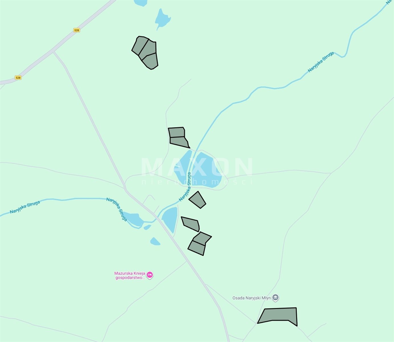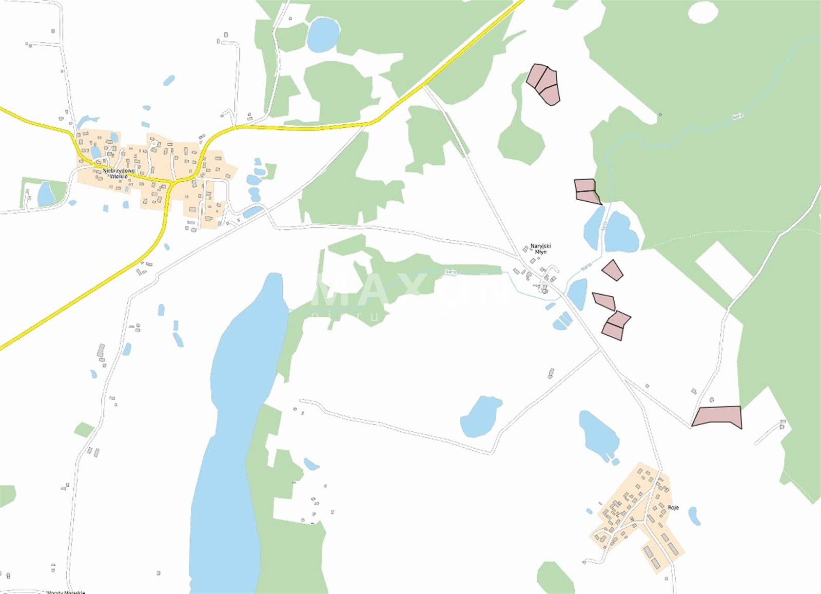Naryjski Młyn – kompleks 10 działek przy jeziorze Narie – Atrakcyjne działki pod budowę domów wakacyjnych i mieszkalnych w otulinie jeziora Narie wśród terenów rekreacyjnych i leśnych w obrębie Roje, w gminie Miłakowo. Osada Naryjski Młyn leży w historycznym regionie Prus Górnych oraz w granicach Narieńskiego Obszaru Chronionego Krajobrazu. Tereny blisko atrakcji turystycznych, możliwość aktywnego wypoczynku czy inwestycji w turystykę indywidualną.