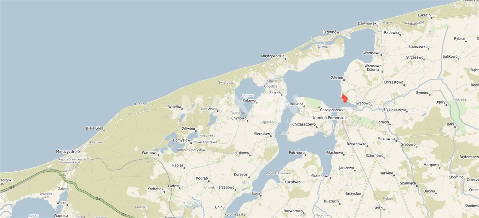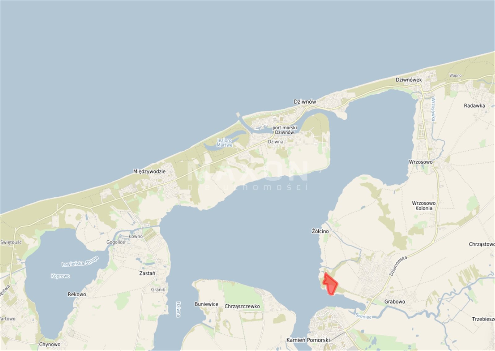 Nieruchomość posiada bezpośredni dostęp do Zalewu Kamieńskiego i znajduje się w pierwszej linii brzegowej, co czyni ją unikatową, prestiżową i niezwykle rzadko spotykaną ofertą inwestycyjną na lokalnym rynku nieruchomości.