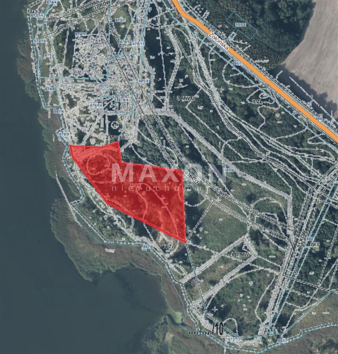 Grunt jest obecnie w fazie podziału geodezyjnego na mniejsze działki.