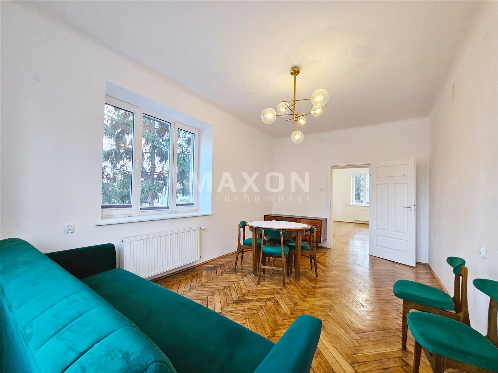 W pomieszczeniach znajduje się stylowy parkiet po renowacji, który nadaje wnętrzu elegancki i reprezentacyjny charakter.