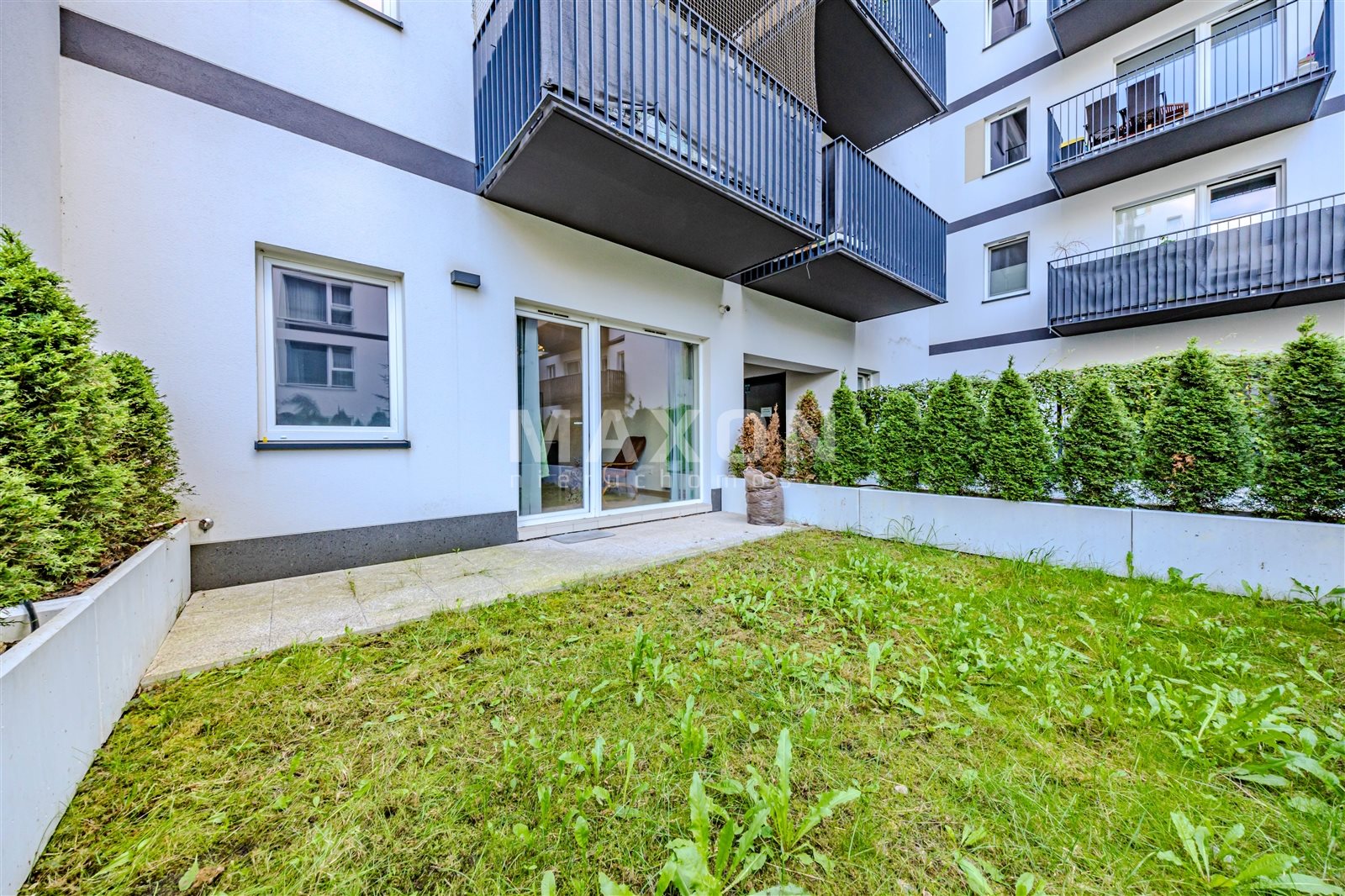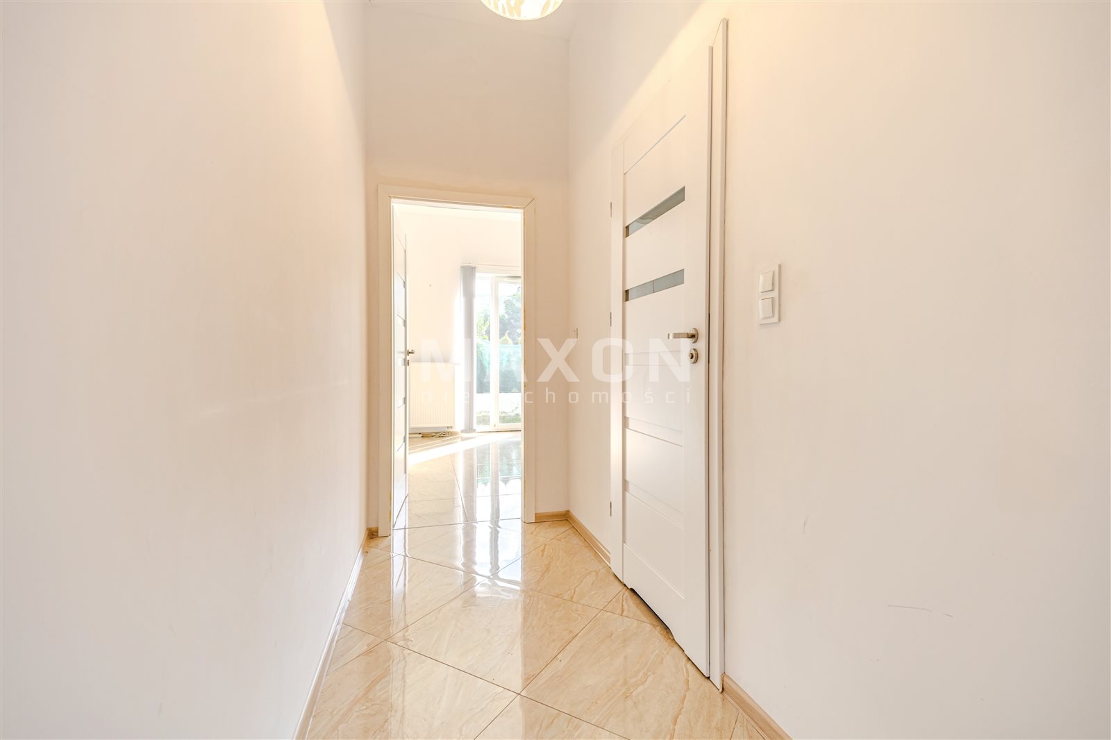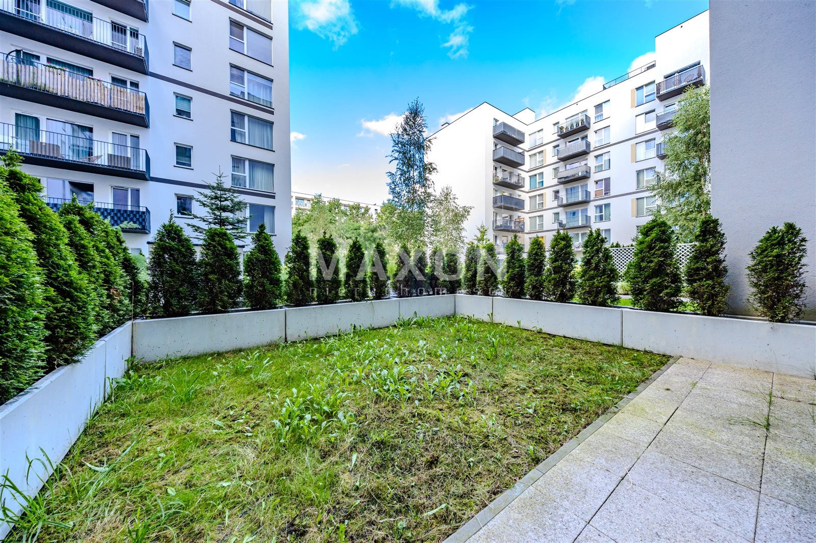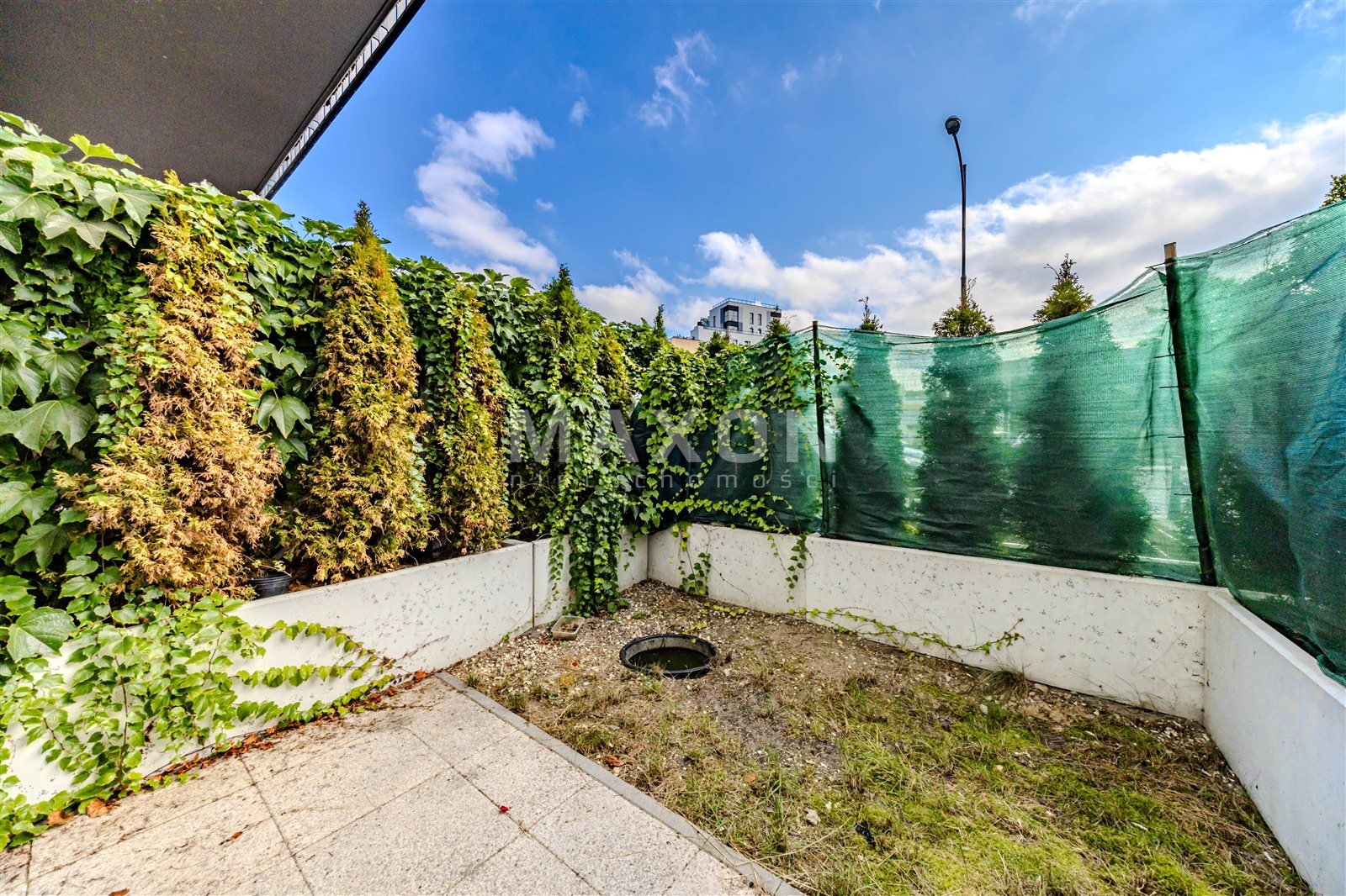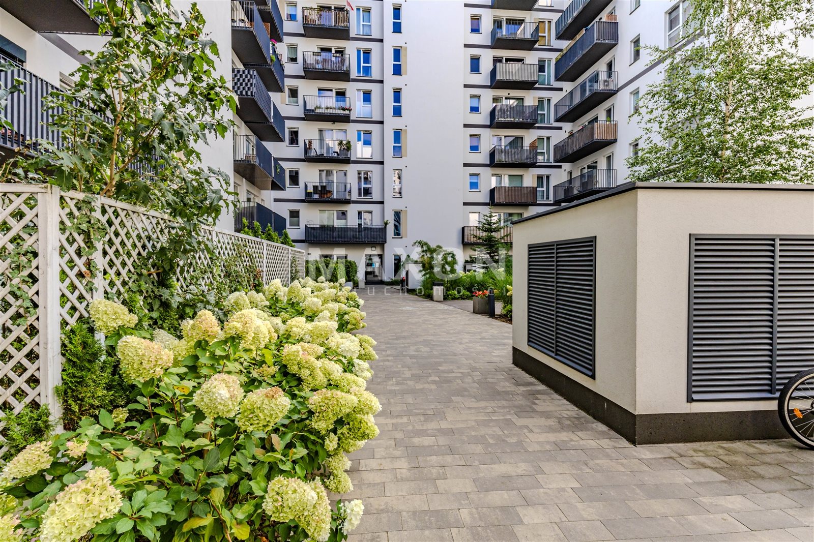 Z obu pokoi prowadzi wyjście na dwa tarasy, połączone z prywatnymi ogródkami przynależącymi do lokalu.