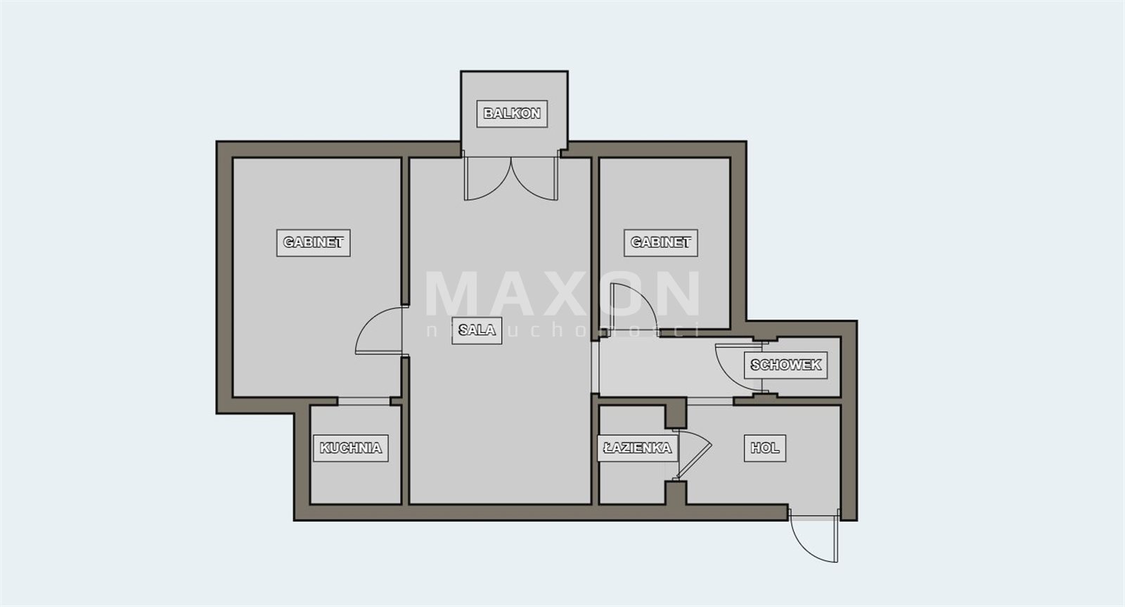Na pierwszym planie znajduje się duża, jasna przestrzeń typu salon z bezpośrednim wyjściem na balkon – idealna jako część reprezentacyjna, wspólna przestrzeń pracy, sala spotkań lub przestrzeń ekspozycyjna. Dzięki dużym oknom pomieszczenie jest świetnie doświetlone naturalnym światłem przez cały dzień.