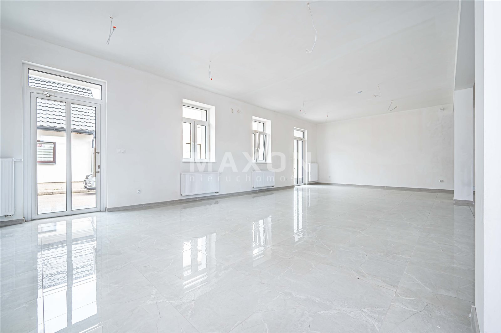 Oferujemy na wynajem nowy, wolnostojący budynek, który można dostosować do wielu rodzajów działalności gospodarczej. Obiekt posiada dwa osobne wejścia od ulicy oraz dodatkowe wejście prowadzące na piętro, dzięki czemu przestrzeń na parterze może funkcjonować niezależnie od tej na piętrze. Istnieje również możliwość podziału głównej sali na dwa mniejsze lokale.