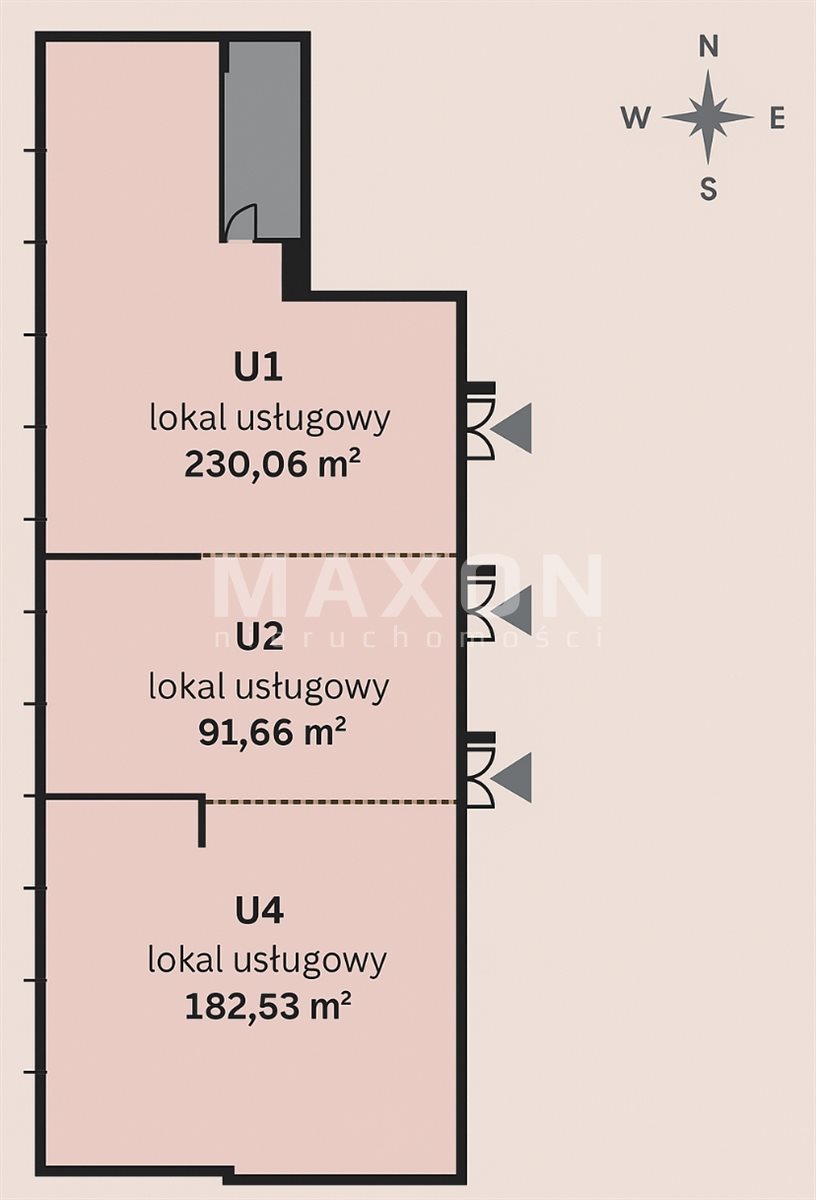 Całkowita powierzchnia lokalu to 182,53 m² – z możliwością podziału na 4 mniejsze niezależne moduły, każdy z osobnym wejściem i dużymi witrynami od ulicy.