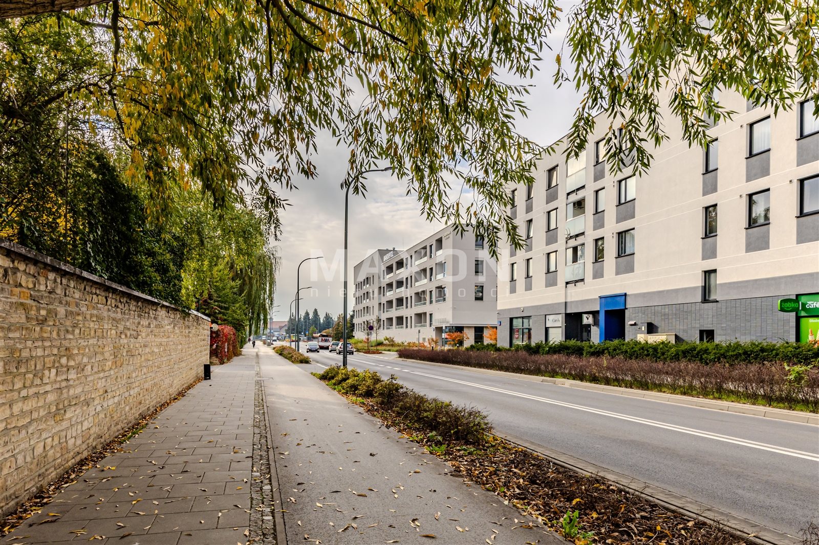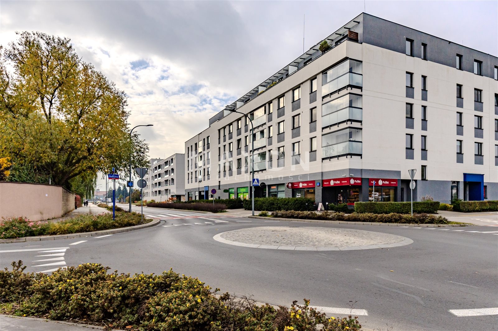 Położony w ciągu handlowo-usługowym – sąsiedztwo piekarni, fryzjera i gabinetu weterynaryjnego.