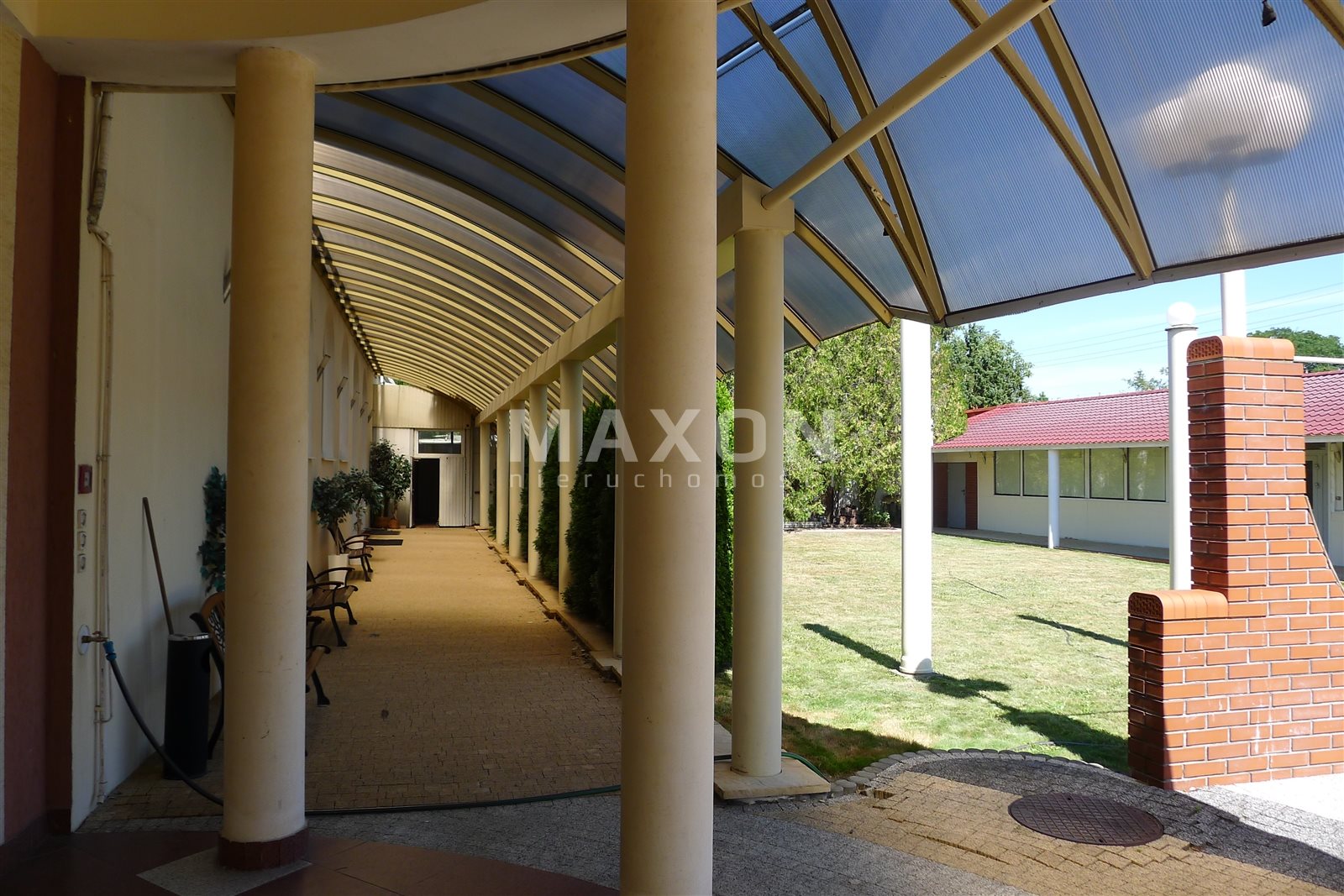 W zamkniętym dziedzińcu - patio znajduje się dodatkowy budynek w formie pawilonu, powierzchni ok.100m2, posiadający indywidualne ogrzewanie, klimatyzację i toalety.