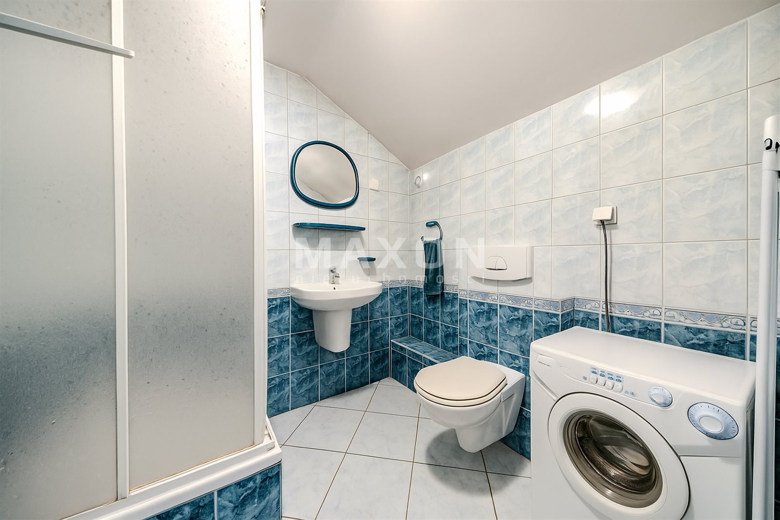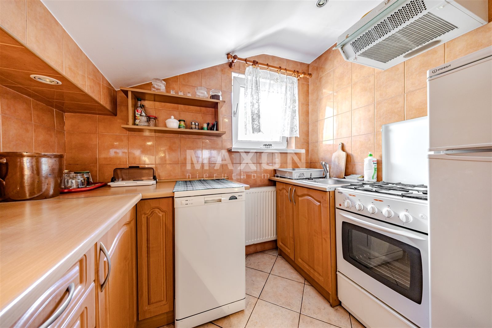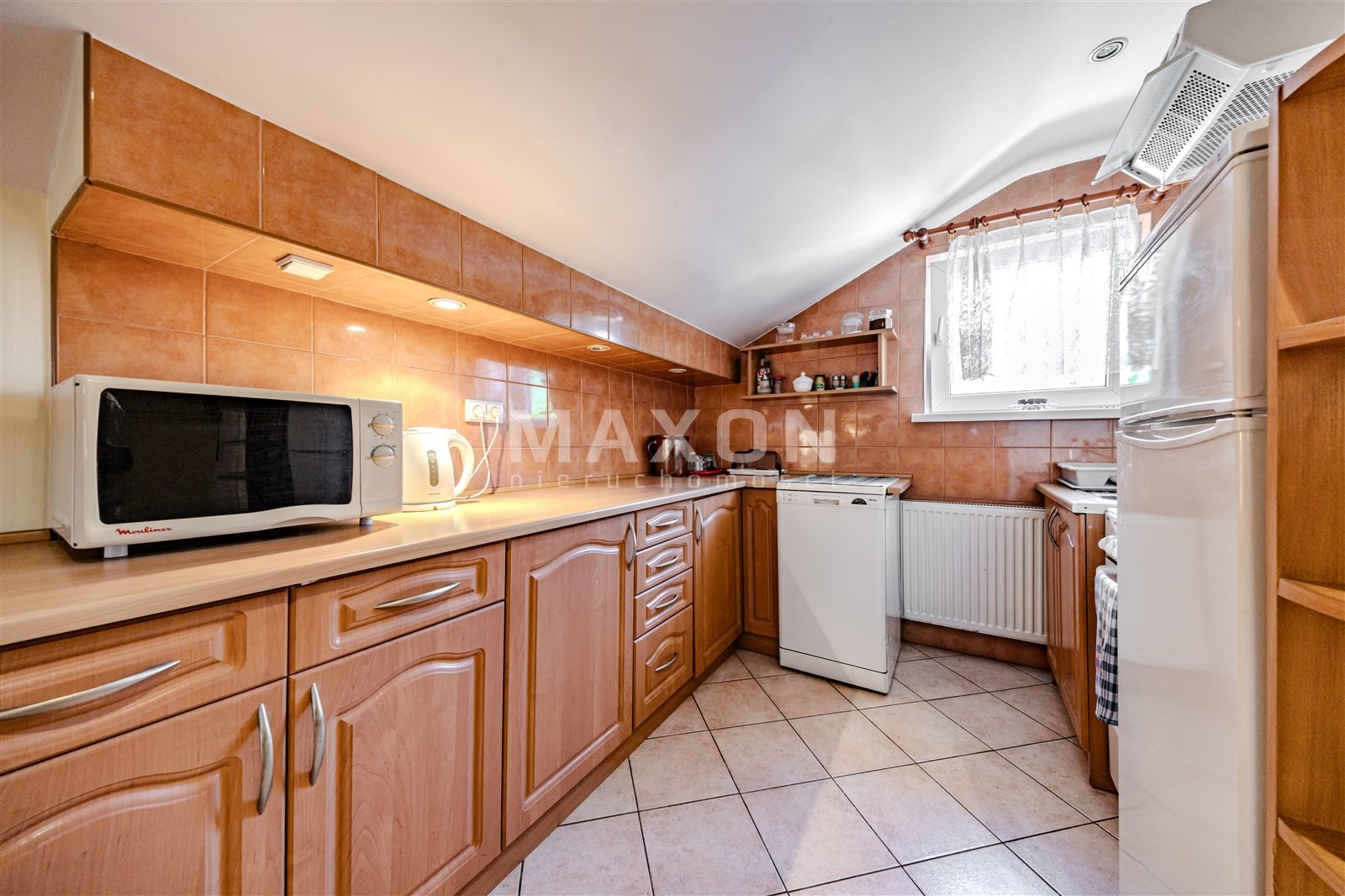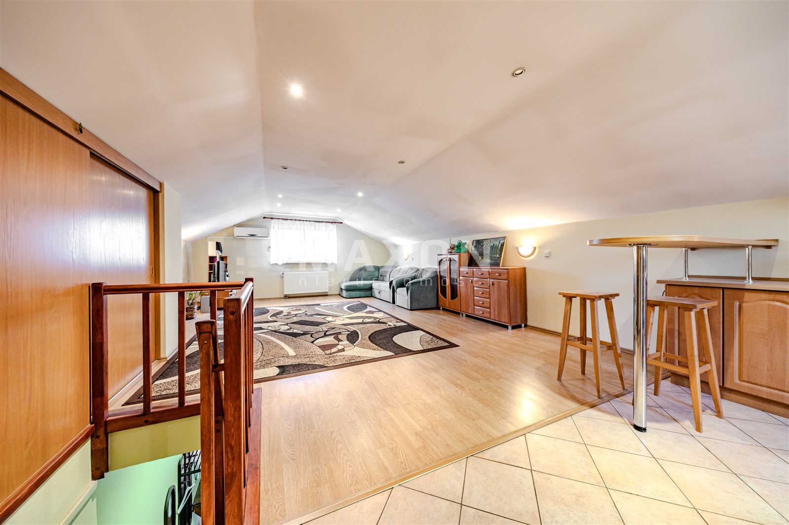 Mieszkanie na górze o powierzchni 58 mkw składa się z dwóch pokoi, aneksu kuchennego i łazienki.