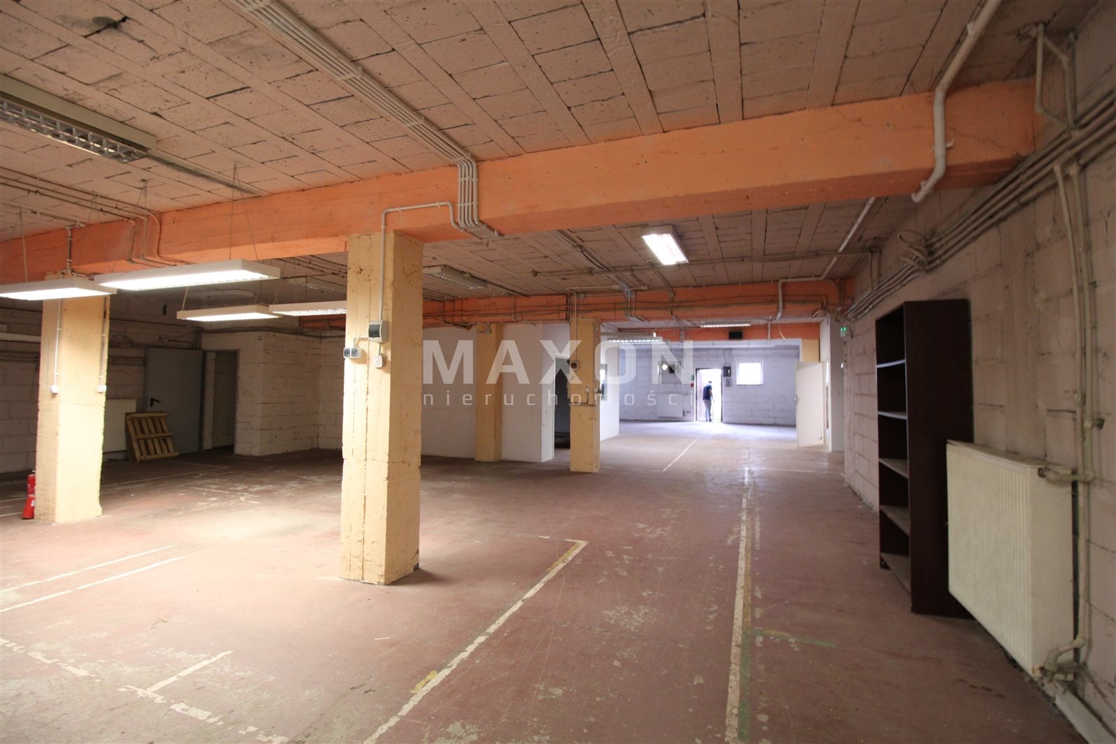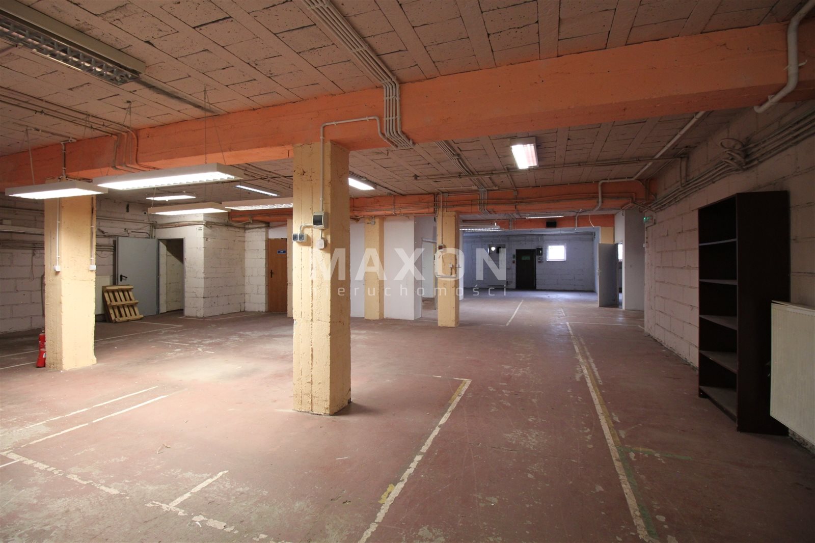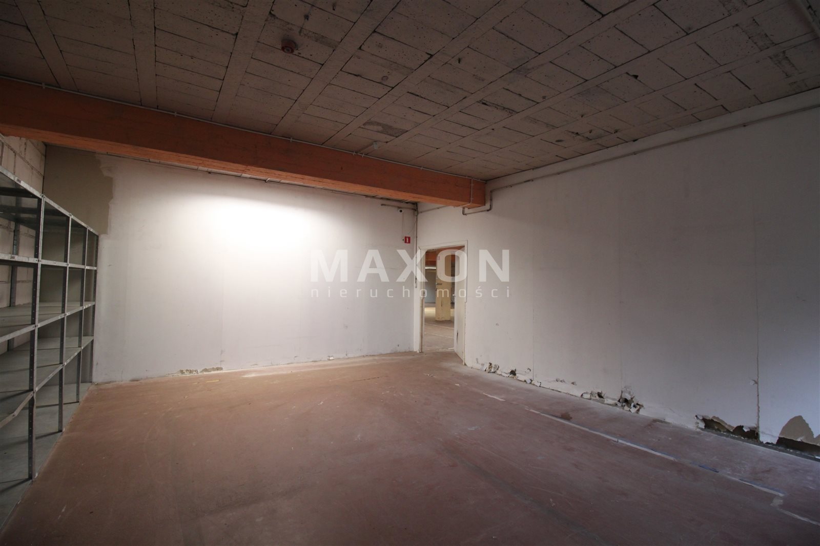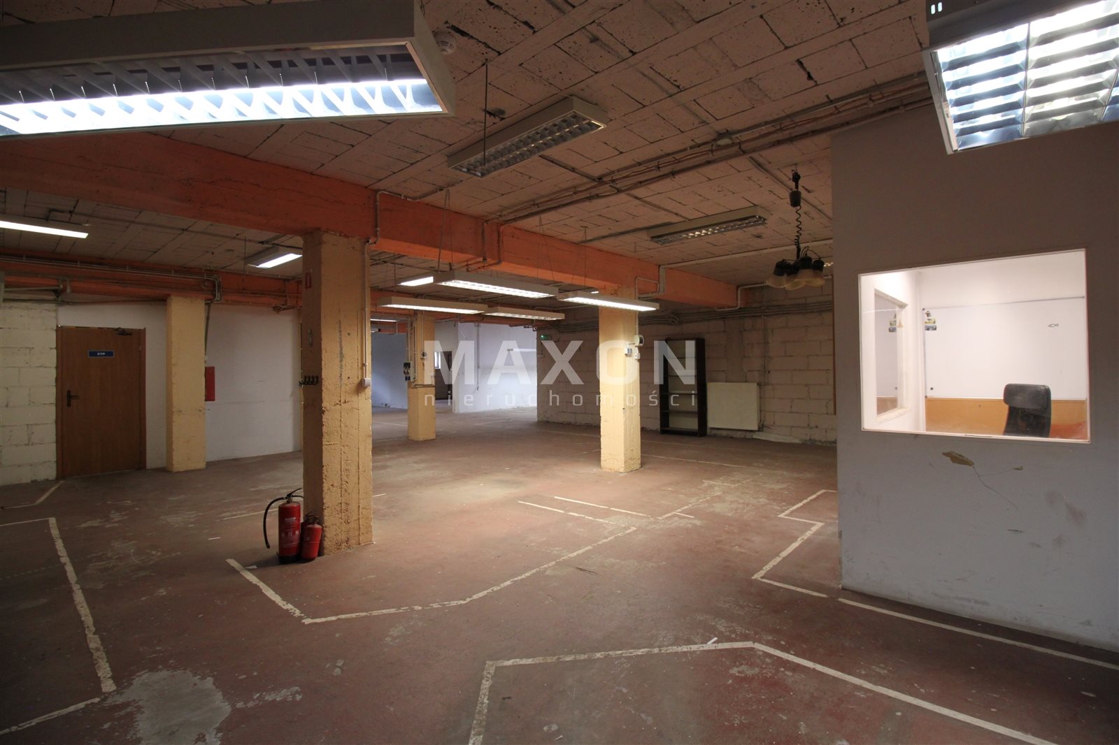 PARTER: główna powierzchnia magazynowo-ekspozycyjna z trzema mniejszymi pomieszczeniami oraz wydzielonym niewielkim biurem.