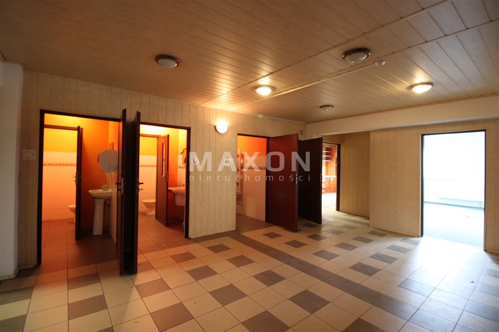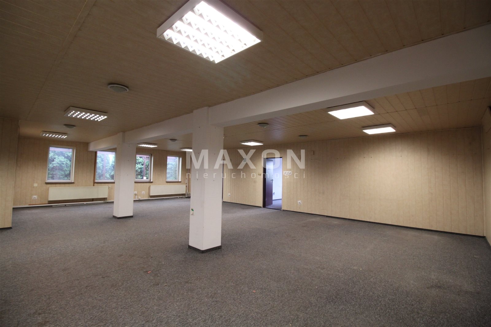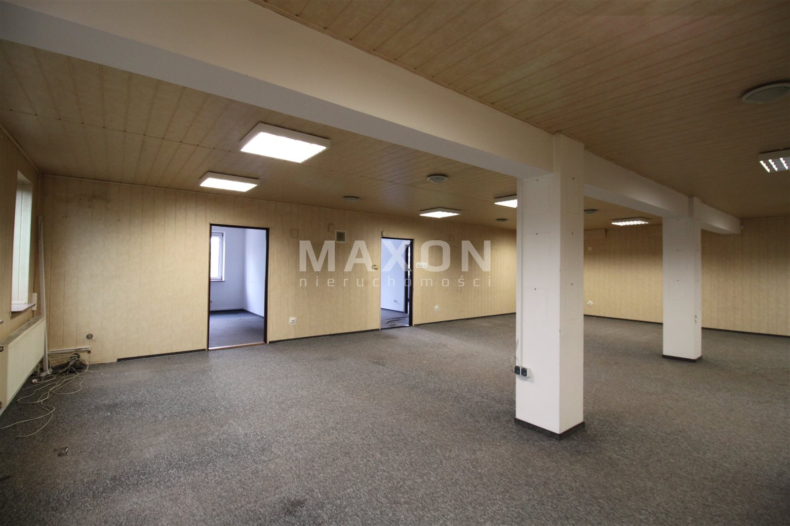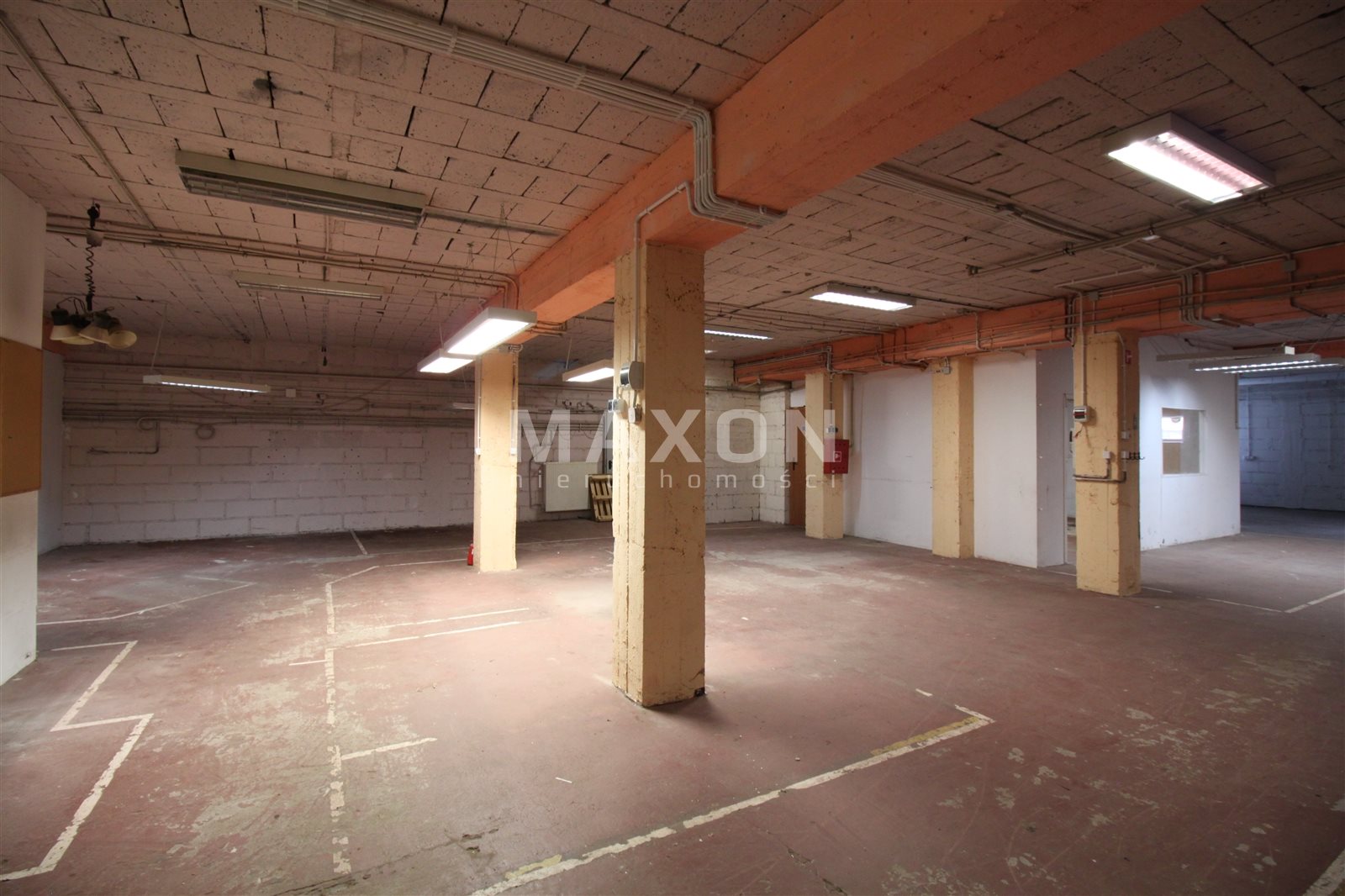 PARTER: główna powierzchnia magazynowo-ekspozycyjna z trzema mniejszymi pomieszczeniami oraz wydzielonym niewielkim biurem.