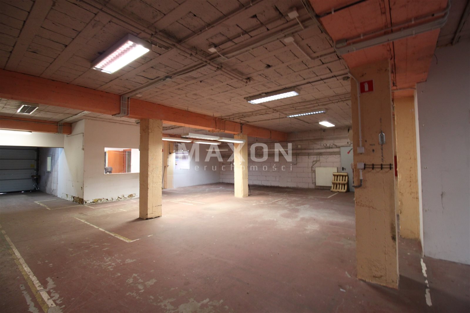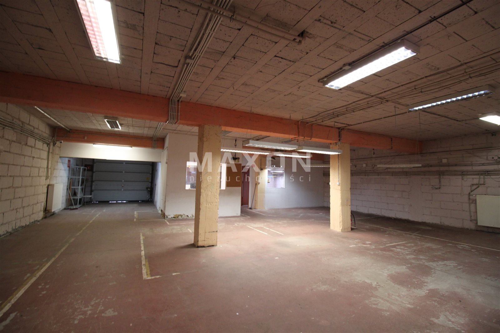 Trzy wejścia + podnoszona brama magazynowa. Pomieszczenie gospodarcze, kotłownia z dwoma piecami, kuchnia, łazienka.
