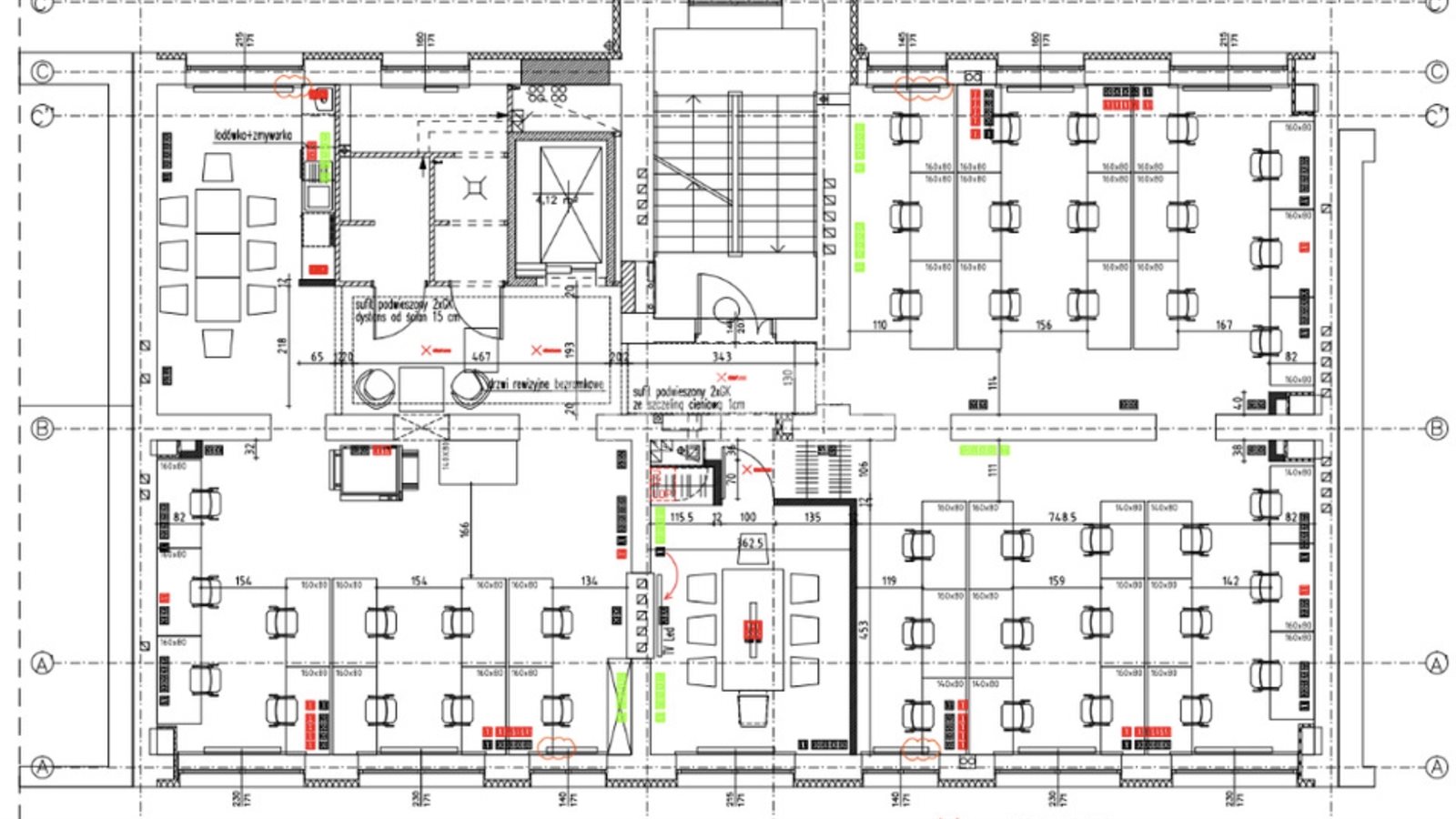 - 3 pokoje biurowe typu open space: 12 osób, 15 osób, 15 osób