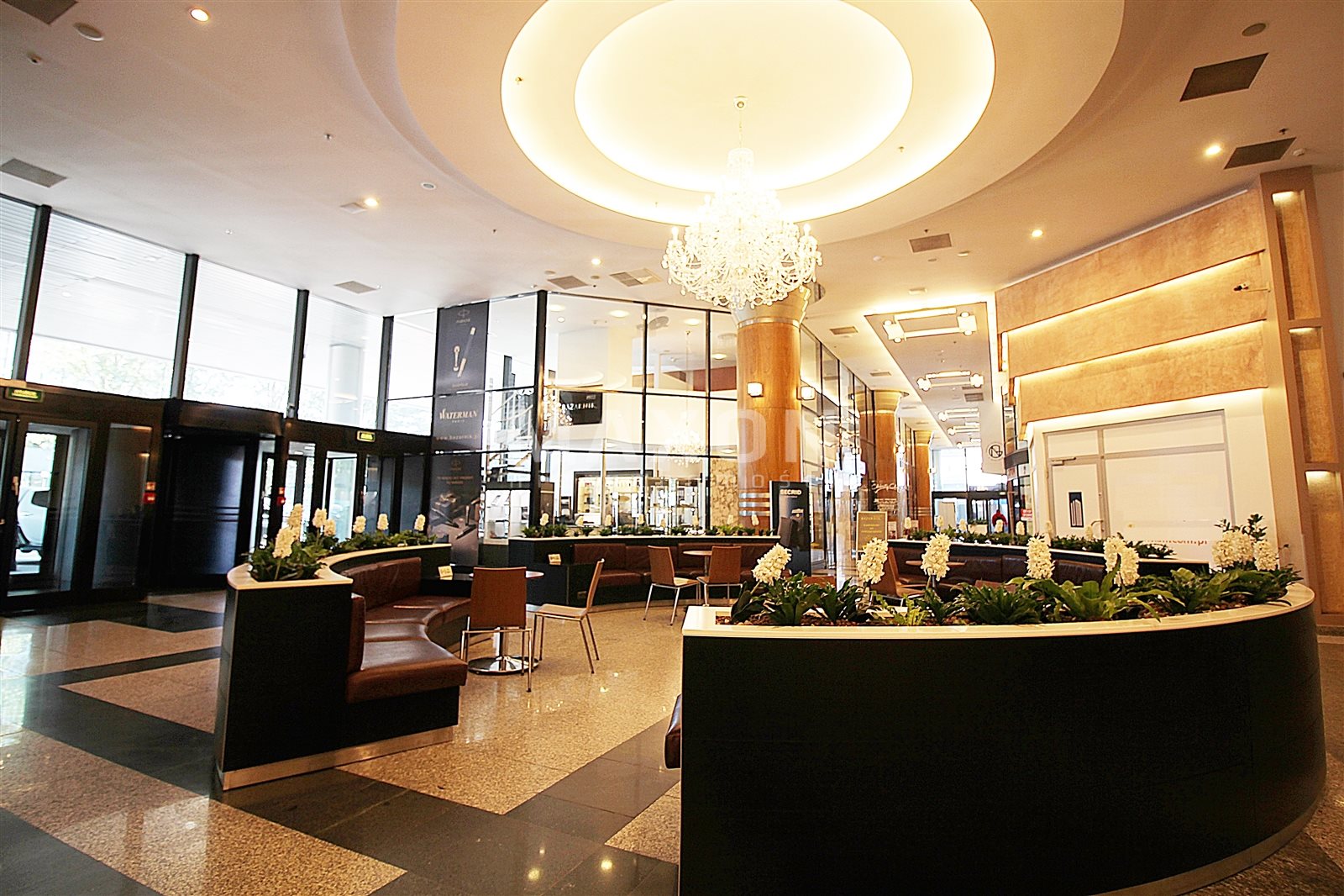 jakości lobby. Na dole jest pasaż handlowo-usługowy.