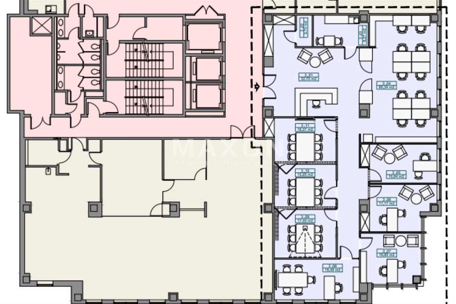 - przestrzeni open space,