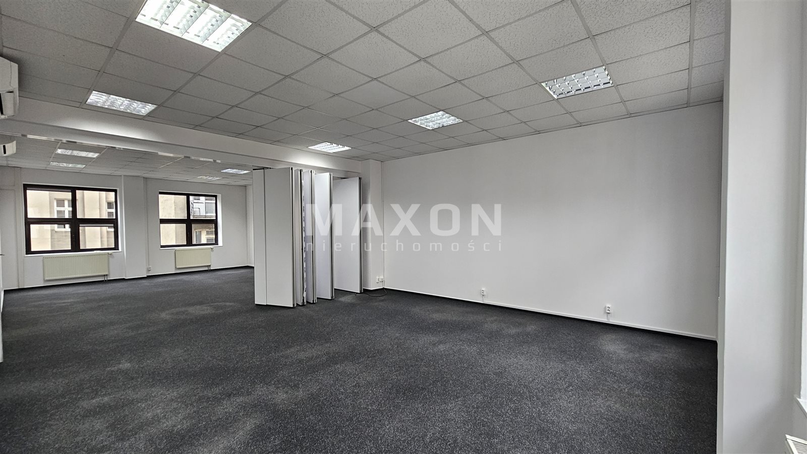 Składająca się przesuwna ściana dzieli dwa pokoje biurowe (jeden będzie około 70mkw)