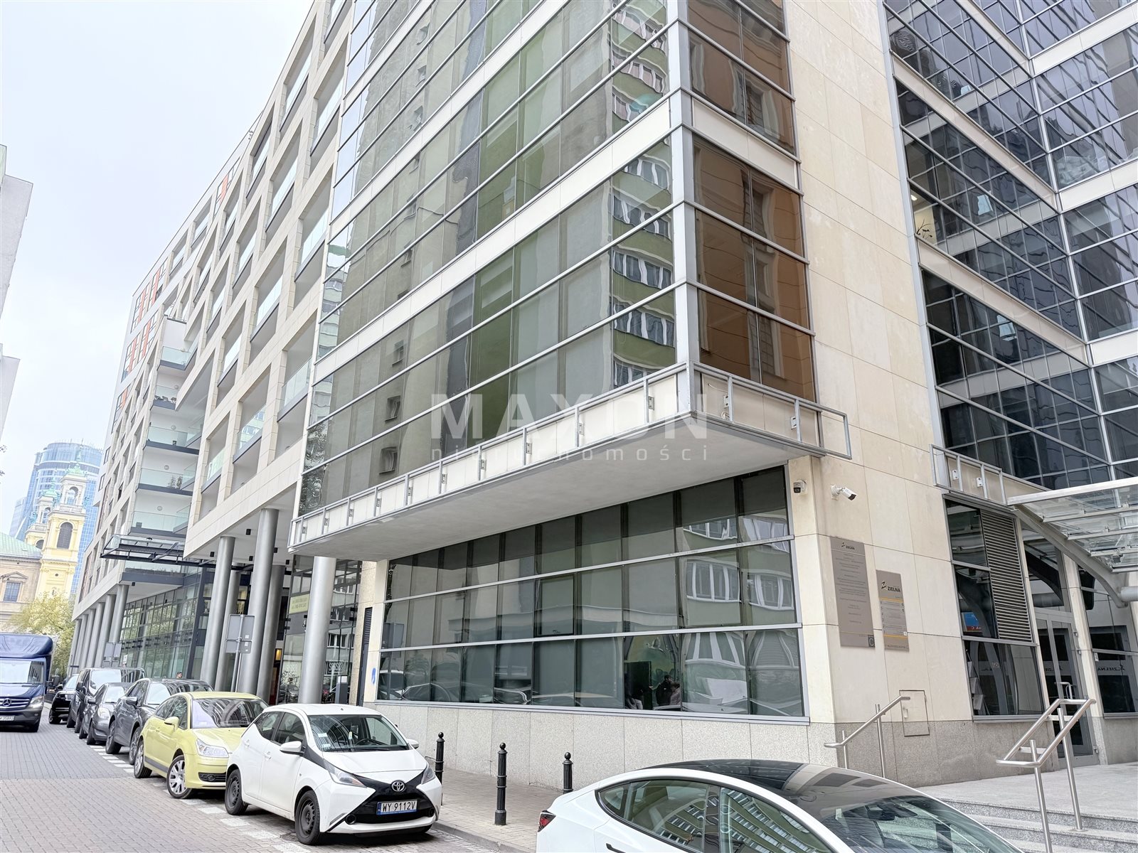 Budynek biurowy przy Metrze Świętokrzyska. Wyjście z metra zaraz przy wejściu do biurowca.