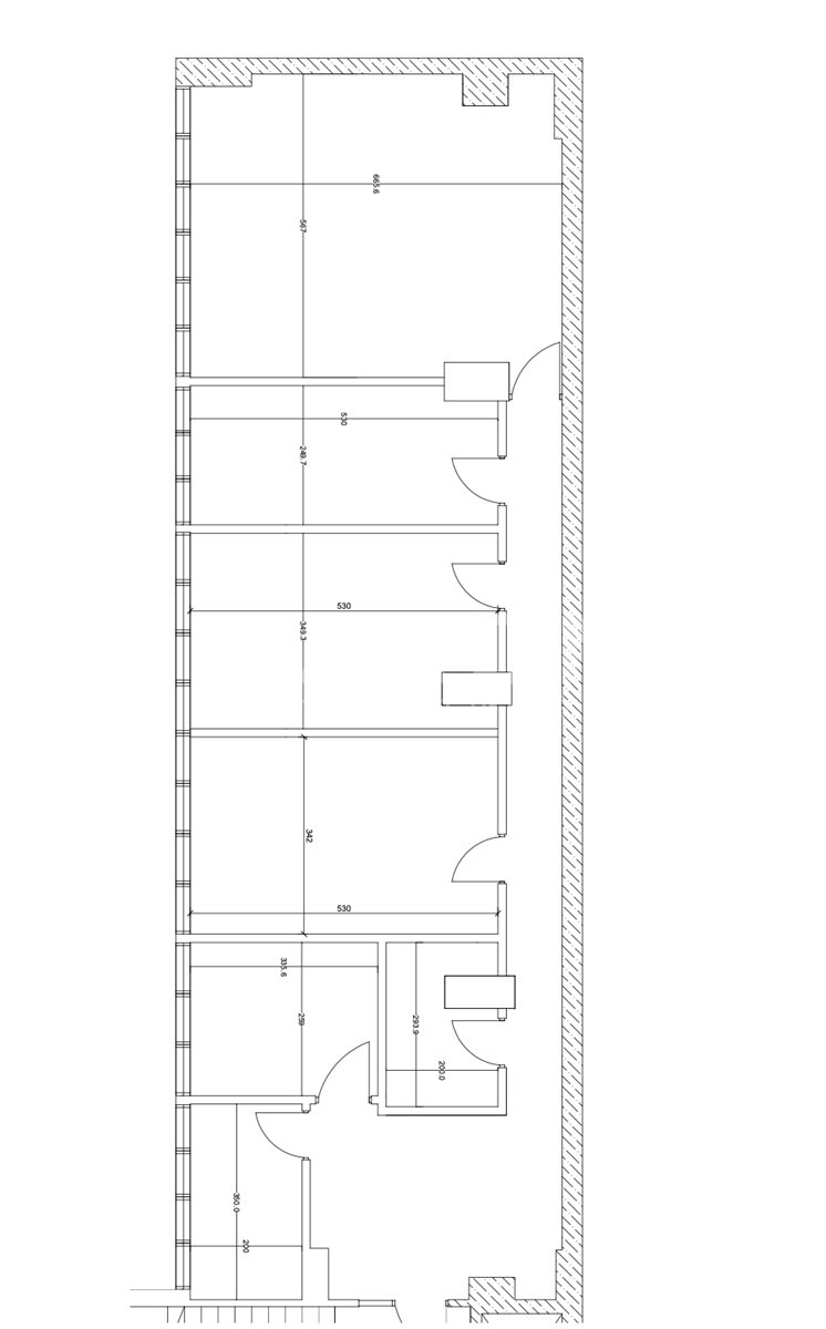 5 oddzielnych pomieszczeń biurowych. Toalety i aneks kuchenny w częściach wspólnych budynku.