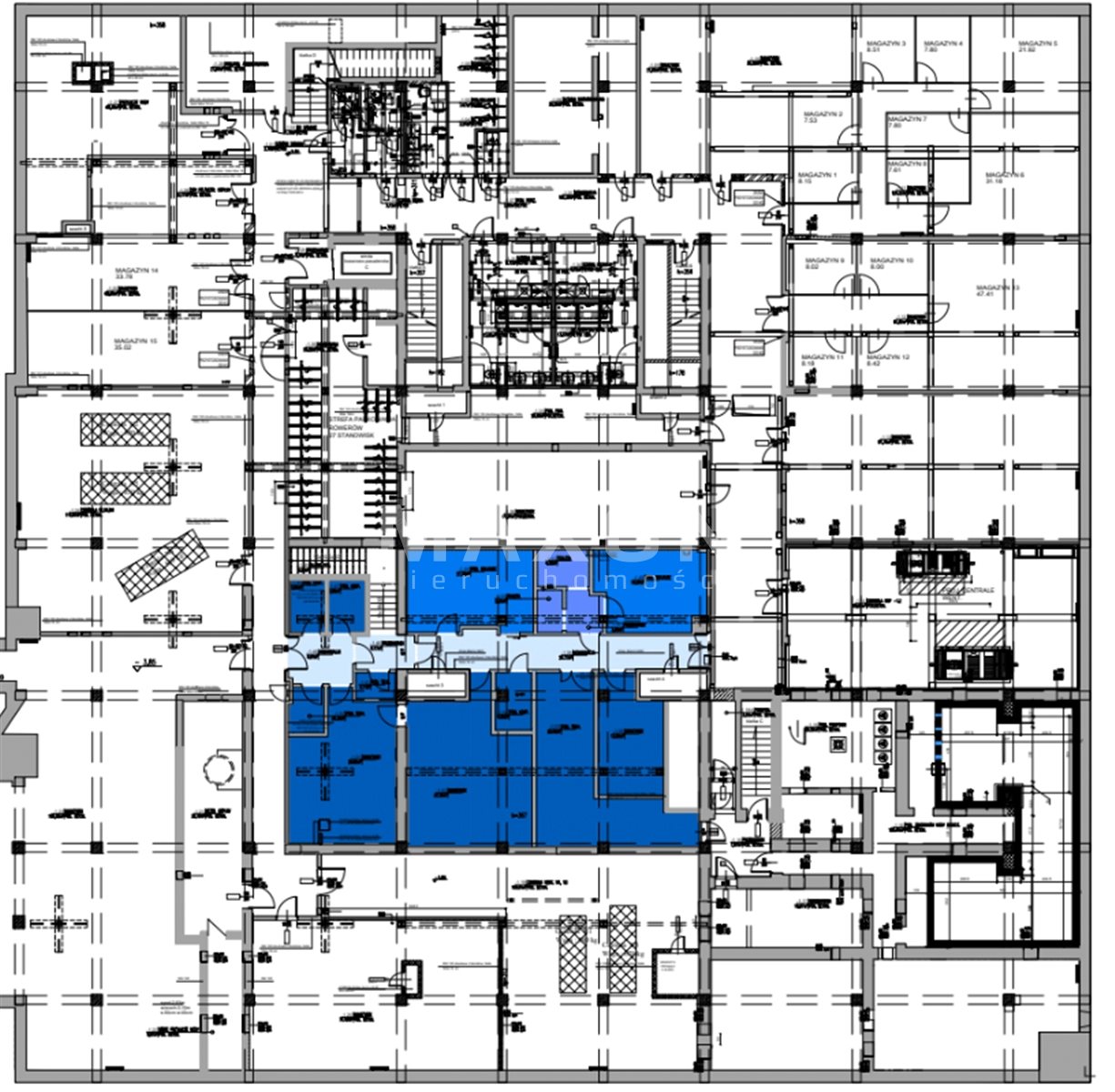 Lokal połaczony schodami z powierzchnią 237 mkw na poziomie -1, opłata około 12 000 pln netto (12 euro/mkw).