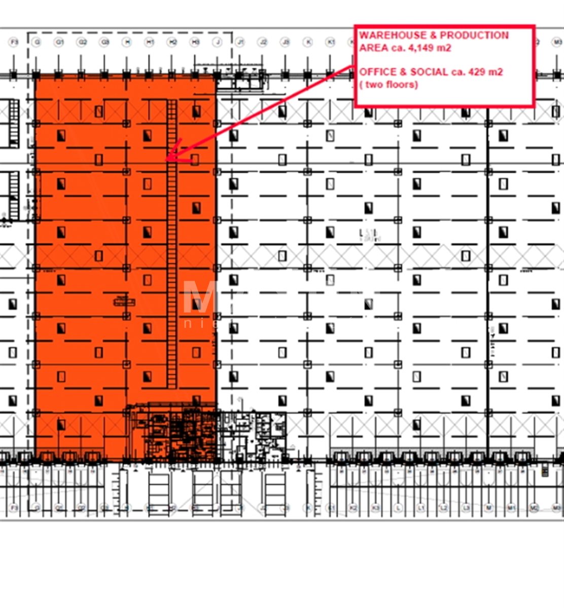 Mamy przyjemność zaprezentować Państwu moduł magazynowy oferujący ok. 4 149 mkw. powierzchni magazynowej wysokiego składowania wraz z ok. 429 mkw. powierzchni biurowo-socjalnej.