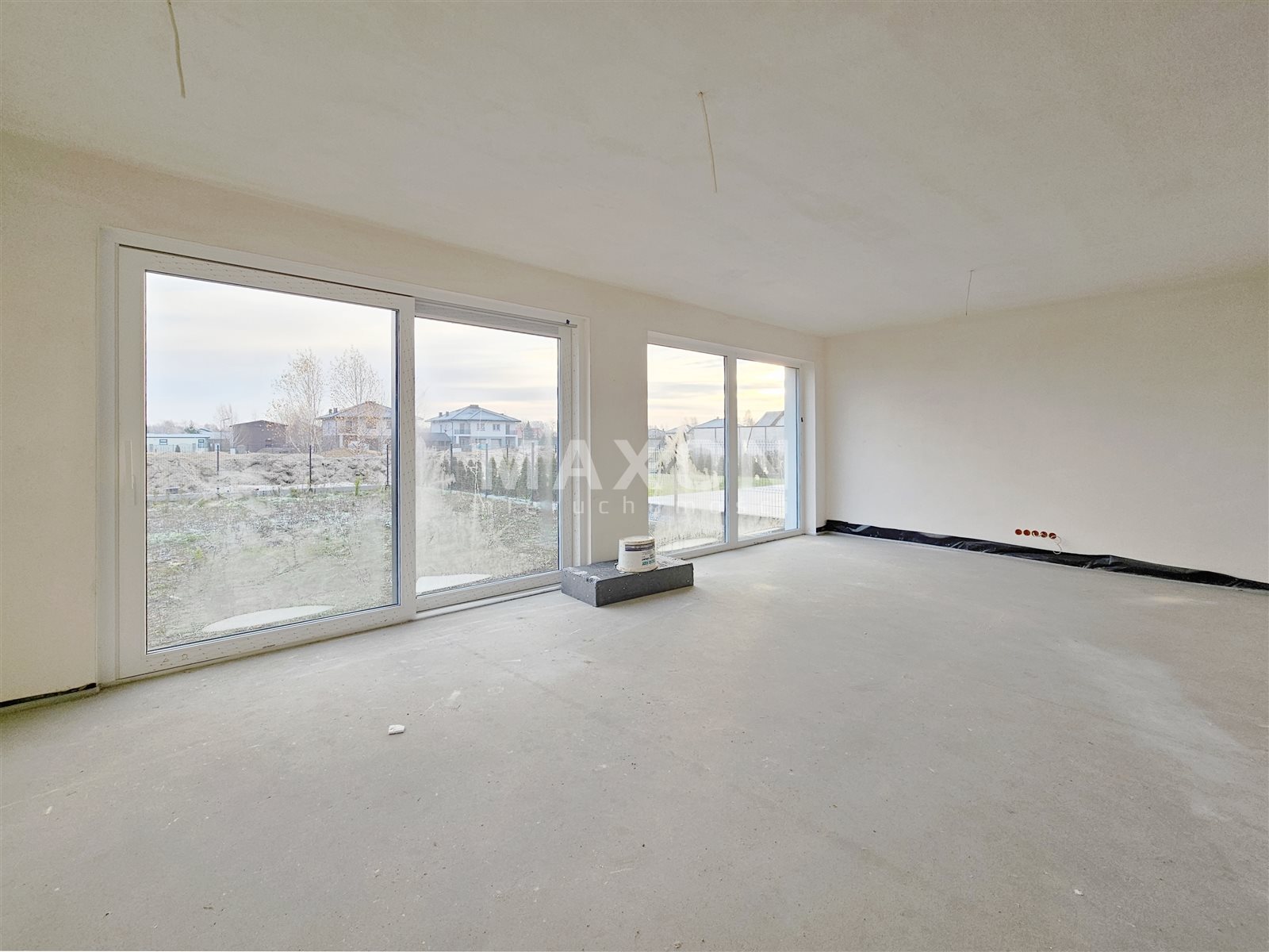 Duże okna w każdym pomieszczeniu zapewniają doskonałe doświetlenie wnętrz oraz nadają bryle nowoczesnego charakteru. Z salonu prowadzi bezpośrednie wyjście na ogród o ekspozycji południowo-zachodniej.