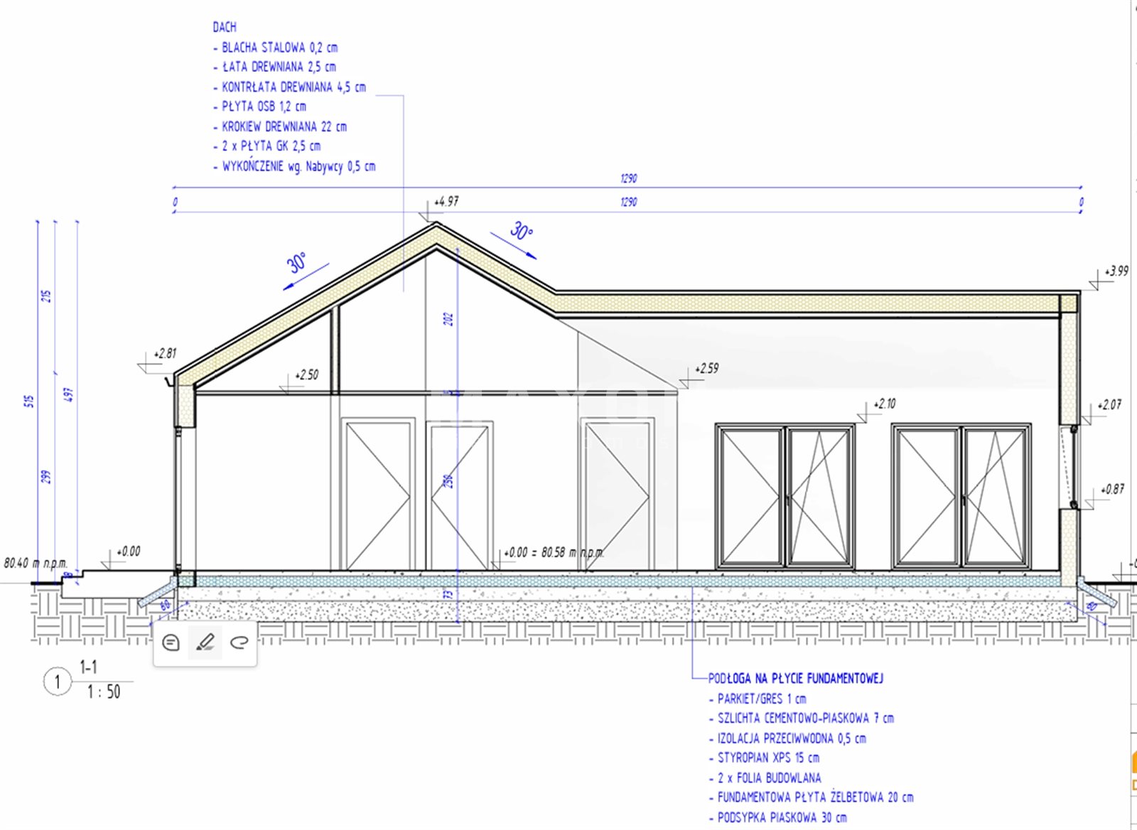 - podłoga na płycie fundamentowej z instalacją ogrzewania podłogowego,