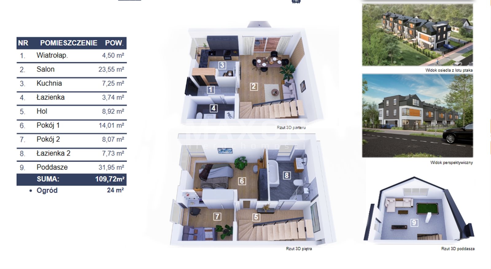 LOKALE SZCZYTOWE 109,72 mkw z własnym podjazdem i oddzielną bramą - CENA 850.000 oraz 890.000 PLN