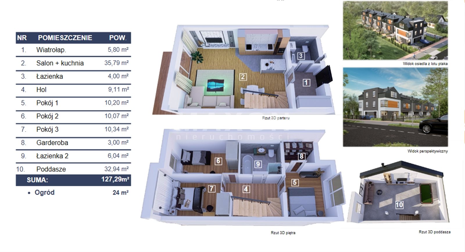 - każdy segment posiada oddzielny ogródek od 25 mkw do 56 mkw z ekspozycją południową lub zachodnią (z widokiem na starodrzew)