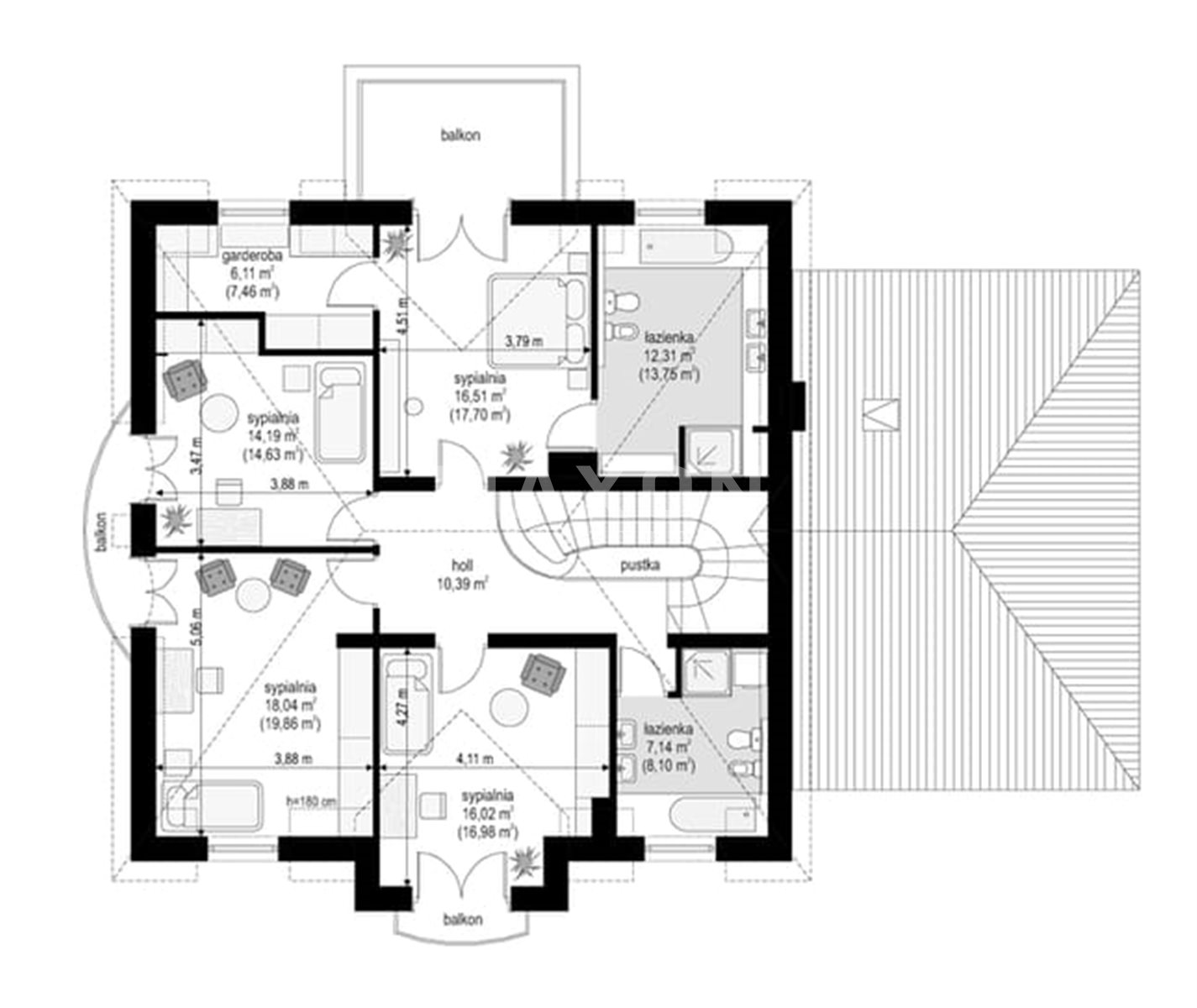 • 2 łazienki, w tym jedna połączona z sypialnią i garderobą