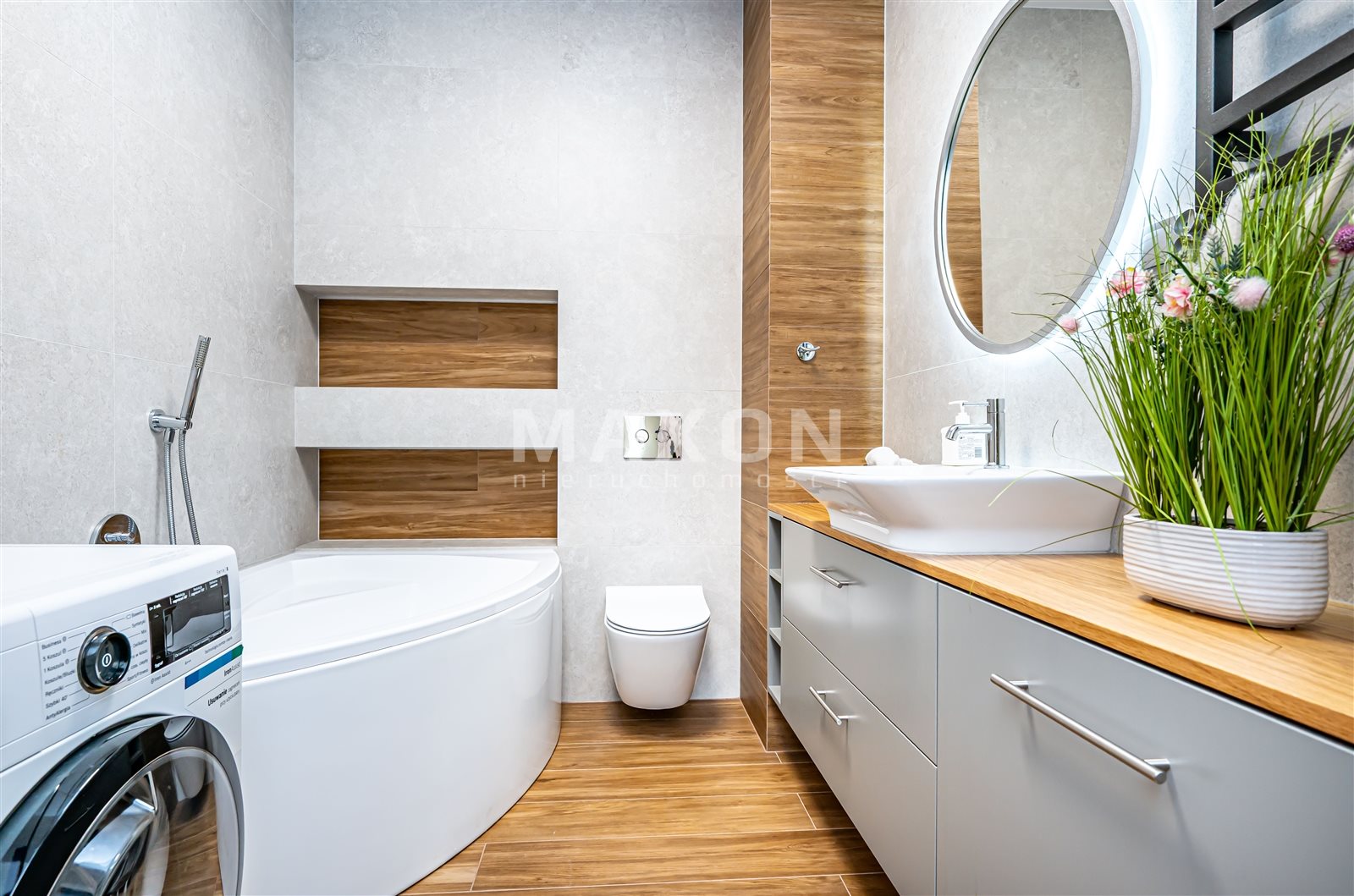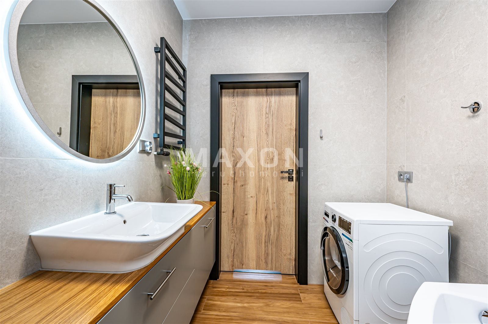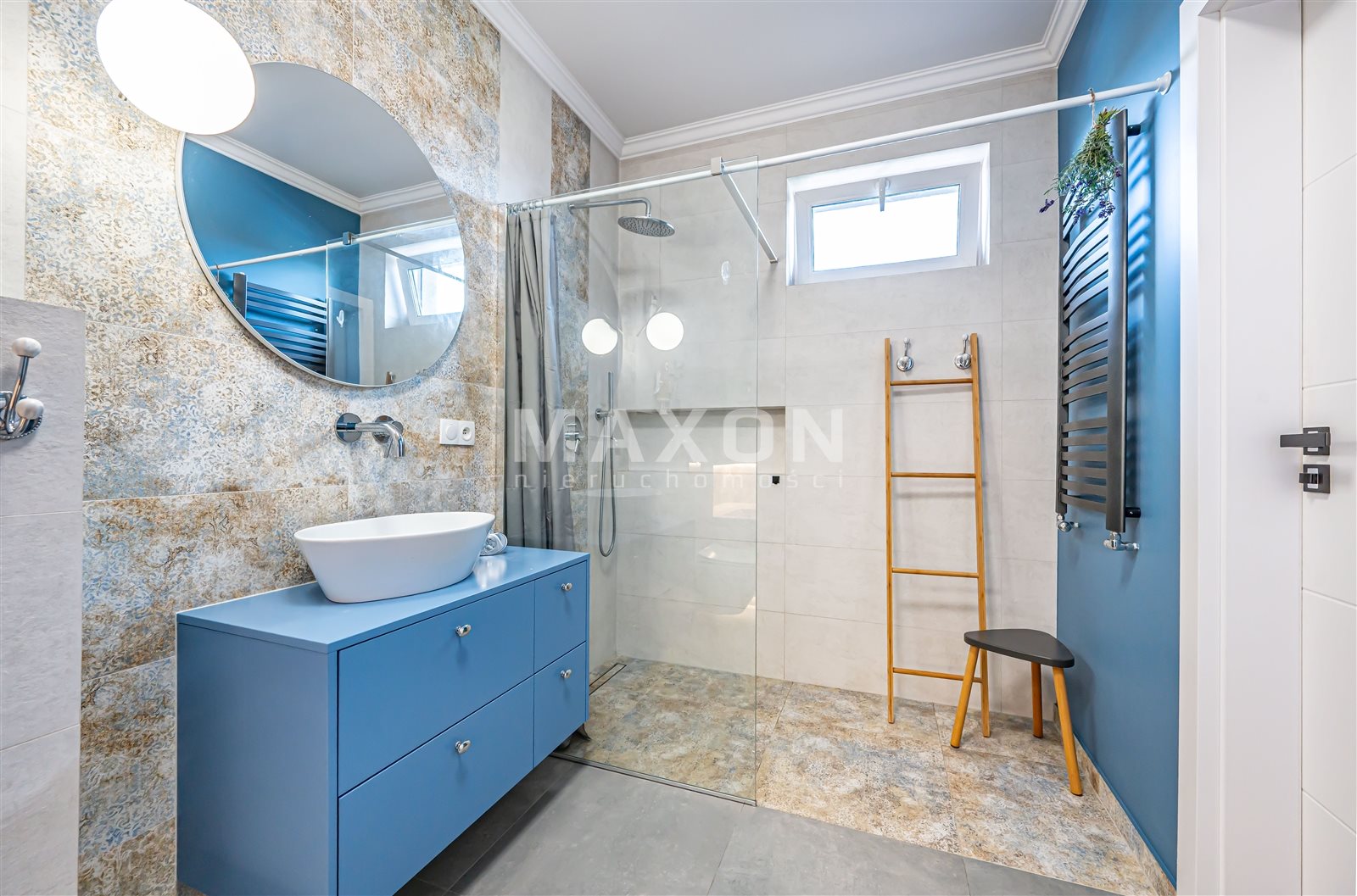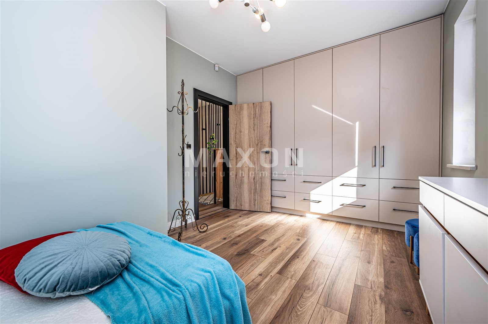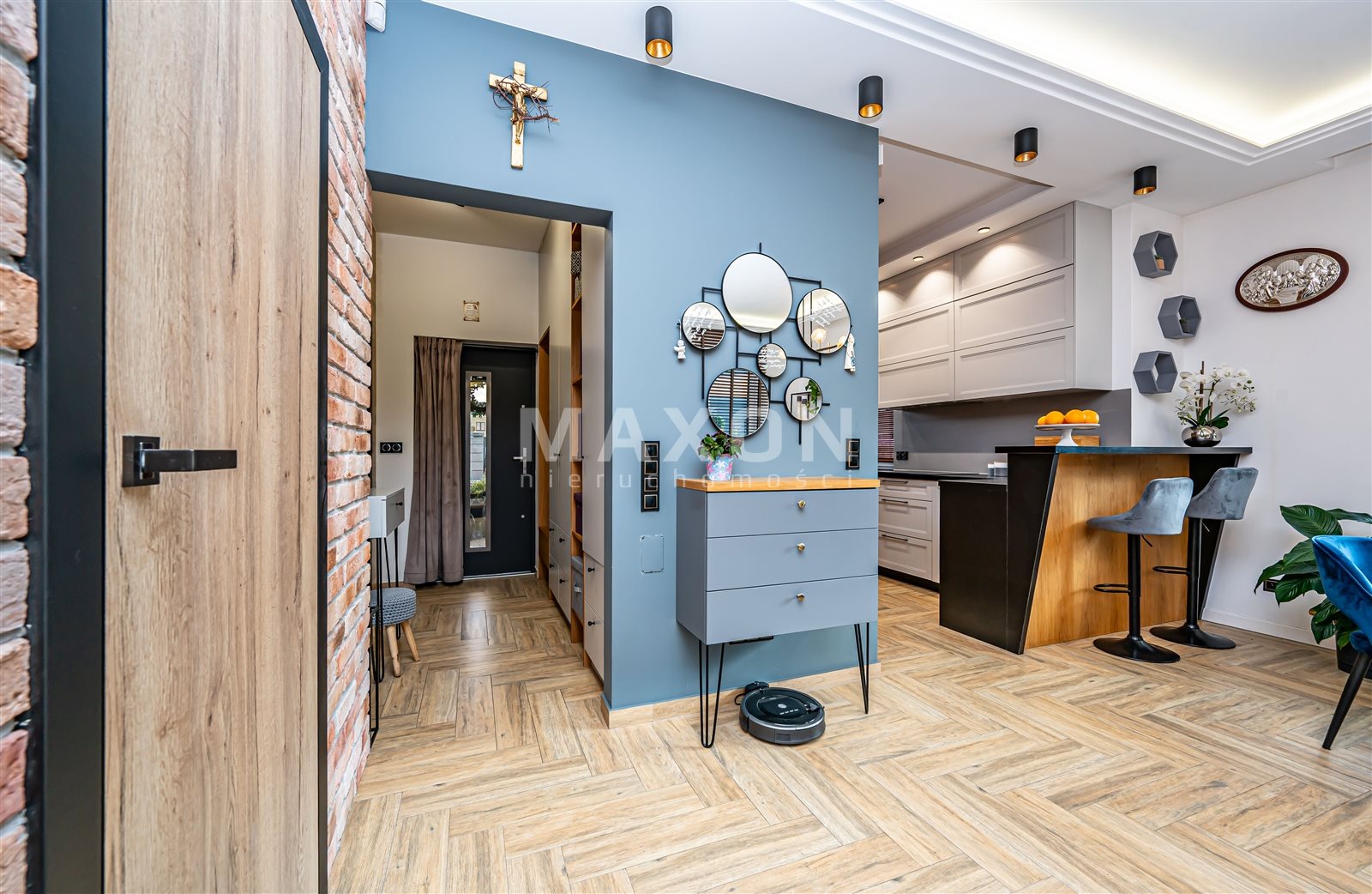 Dom wykończony jest w wysokim standardzie – posiada okna trzyszybowe, ogrzewanie podłogowe, klimatyzację, centralny odkurzacz, zabudowaną kuchnię z AGD oraz drzwi antywłamaniowe. Dach pokryty blachodachówką, ocieplony, z klimatyzacją, system podlewania automatycznego w ogrodzie.