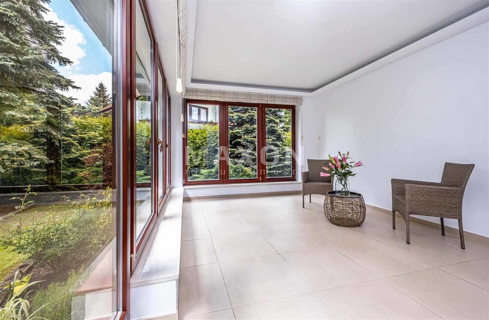 Na szczególną uwagę zasługuje dobudowany kilka lat temu, ogród zimowy (18 mkw.), z dużymi przeszkleniami i pięknym widokiem na zadbany ogród z licznymi drzewami, szpalerami krzewów oraz roślin kwitnących.