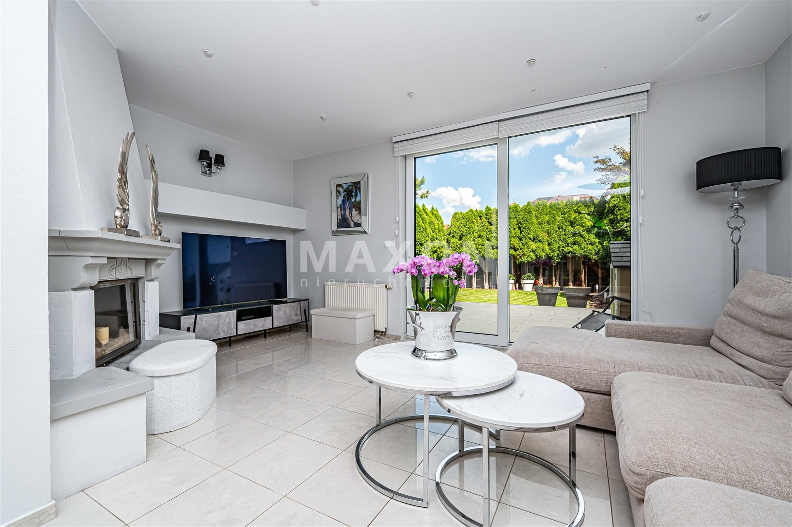 Dom, po gruntownym remoncie przeprowadzonym rok temu, zachwyca wysokim standardem wykończenia i przemyślanym rozkładem pomieszczeń.