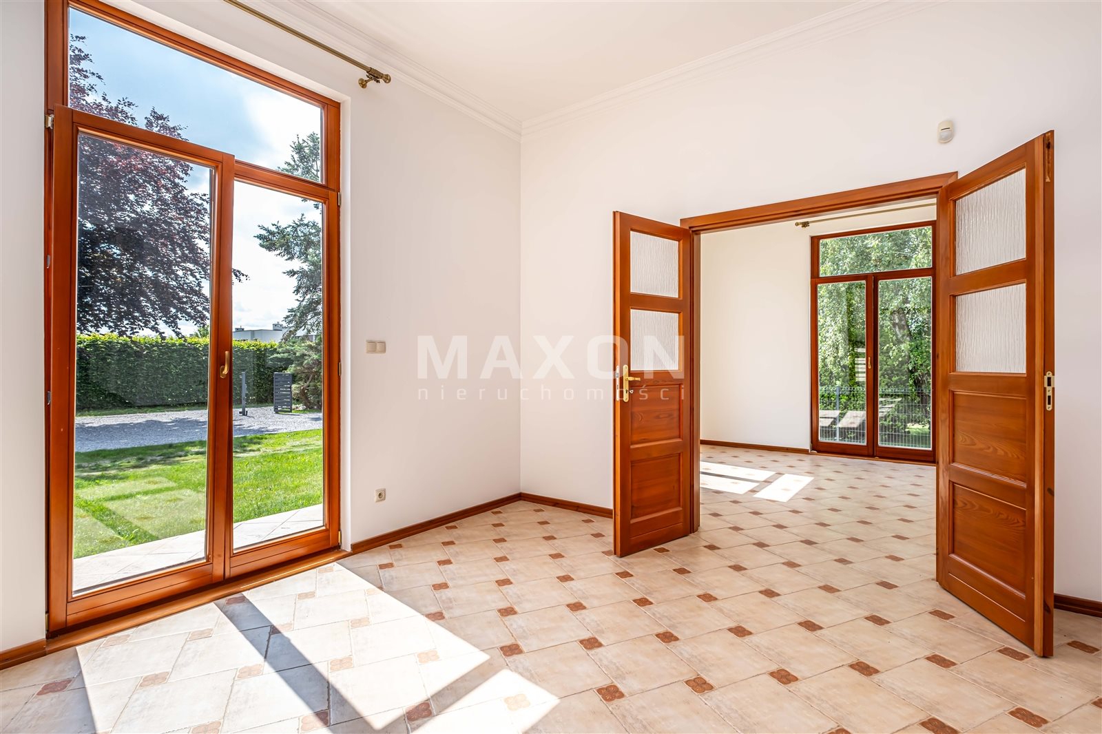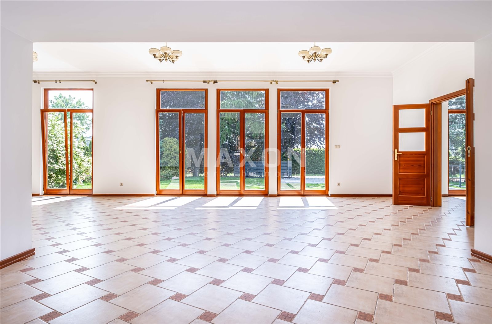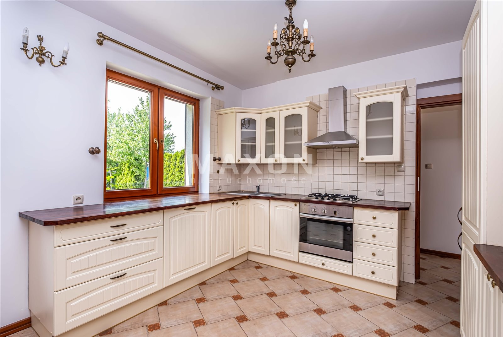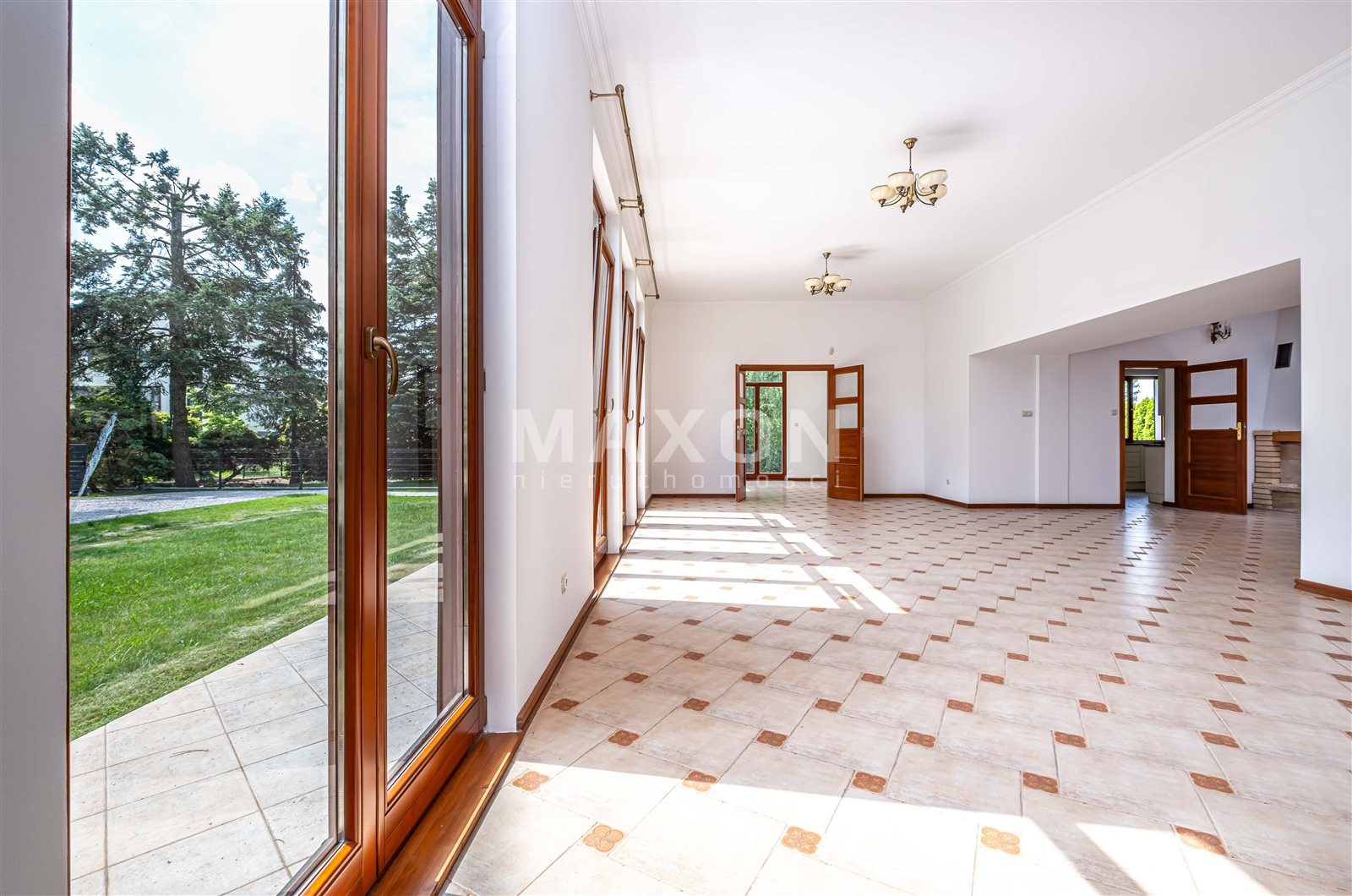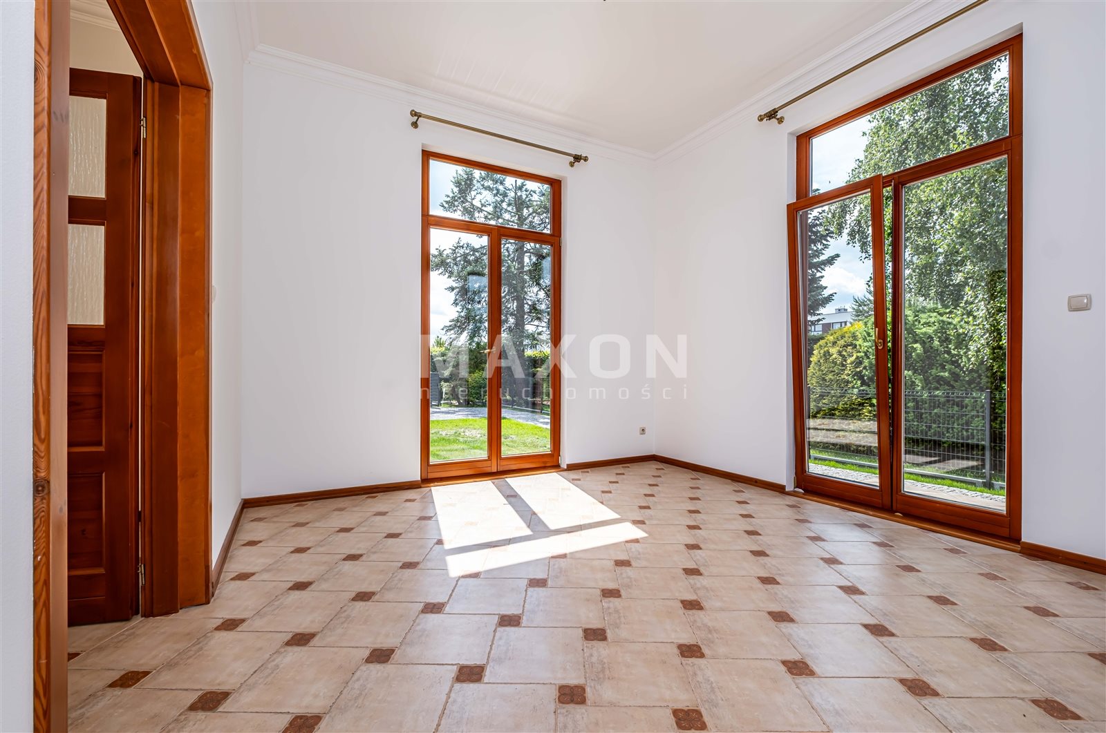 Dom zachwyca przestronnym i jasnym salonem o wysokości ponad 4 metrów, z dużymi oknami, które subtelnie łączą wnętrze z zadbanym ogrodem, otwierając widok na zmieniającą się w rytm pór roku zieleń. To idealne miejsce dla osób ceniących relaks i harmonię z naturą.