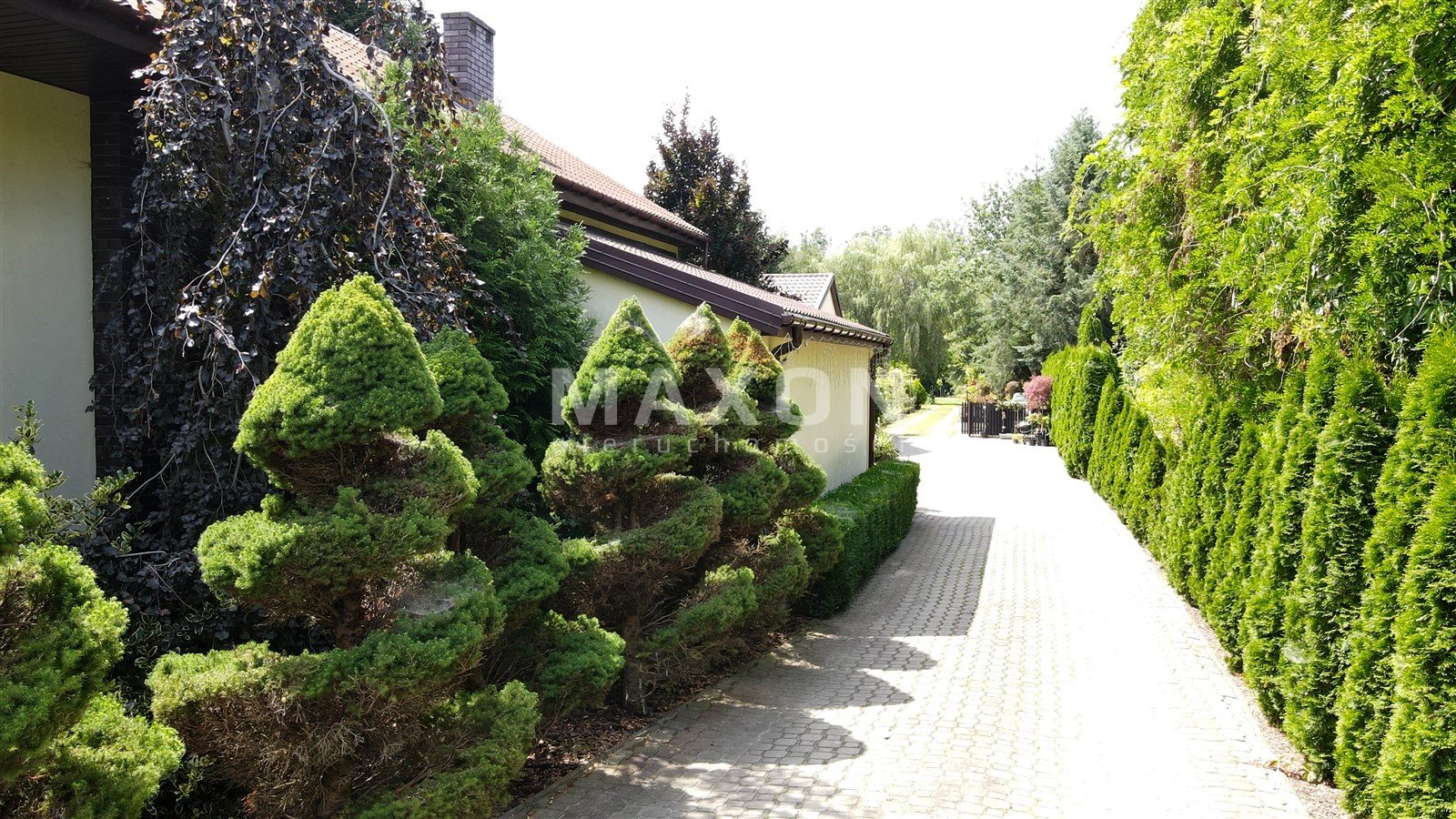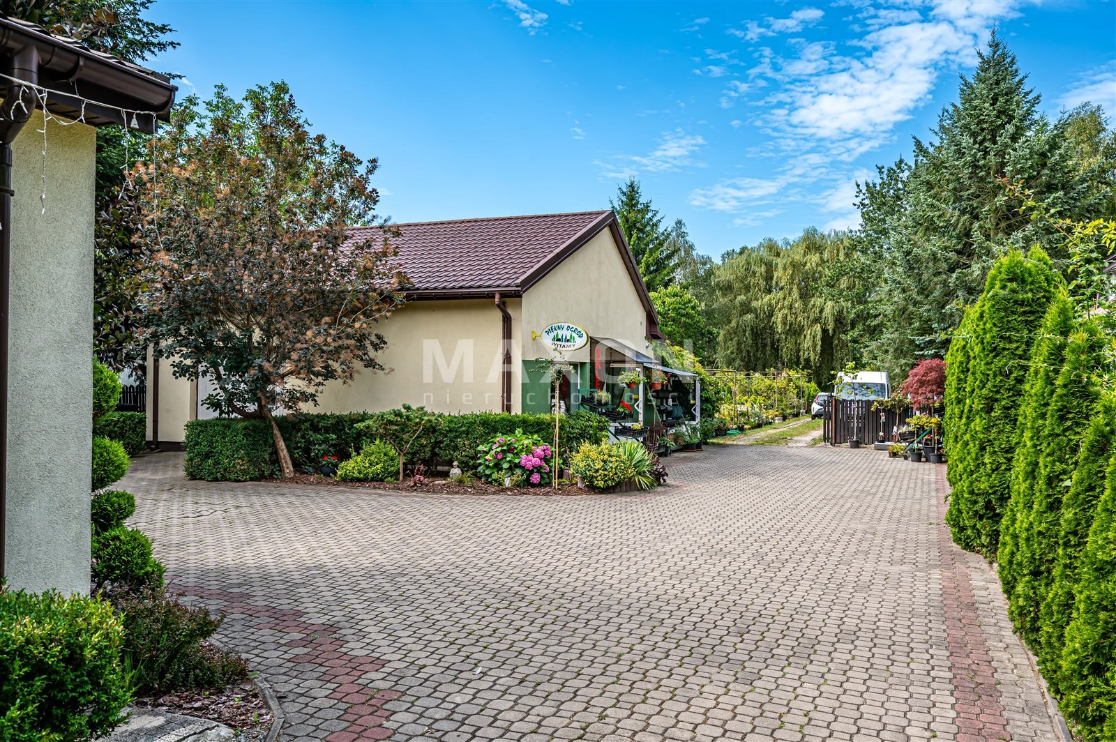 Teren utwardzony kostką brukową – wygodne podjazdy, estetyczne otoczenie.