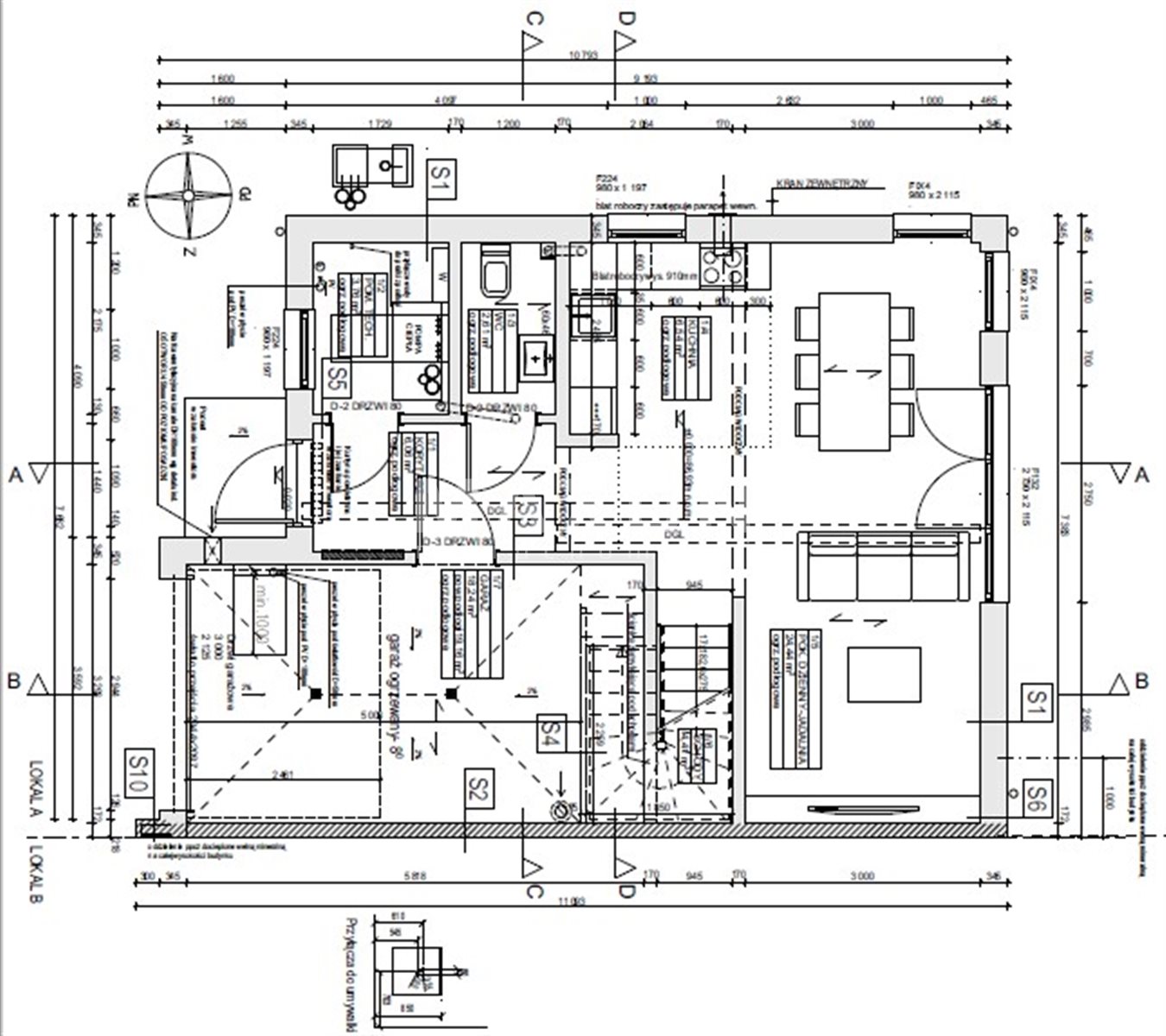 - Ściany wewnętrzne z płyt g-k, z warstwą płyty OSB pod meble wiszące,