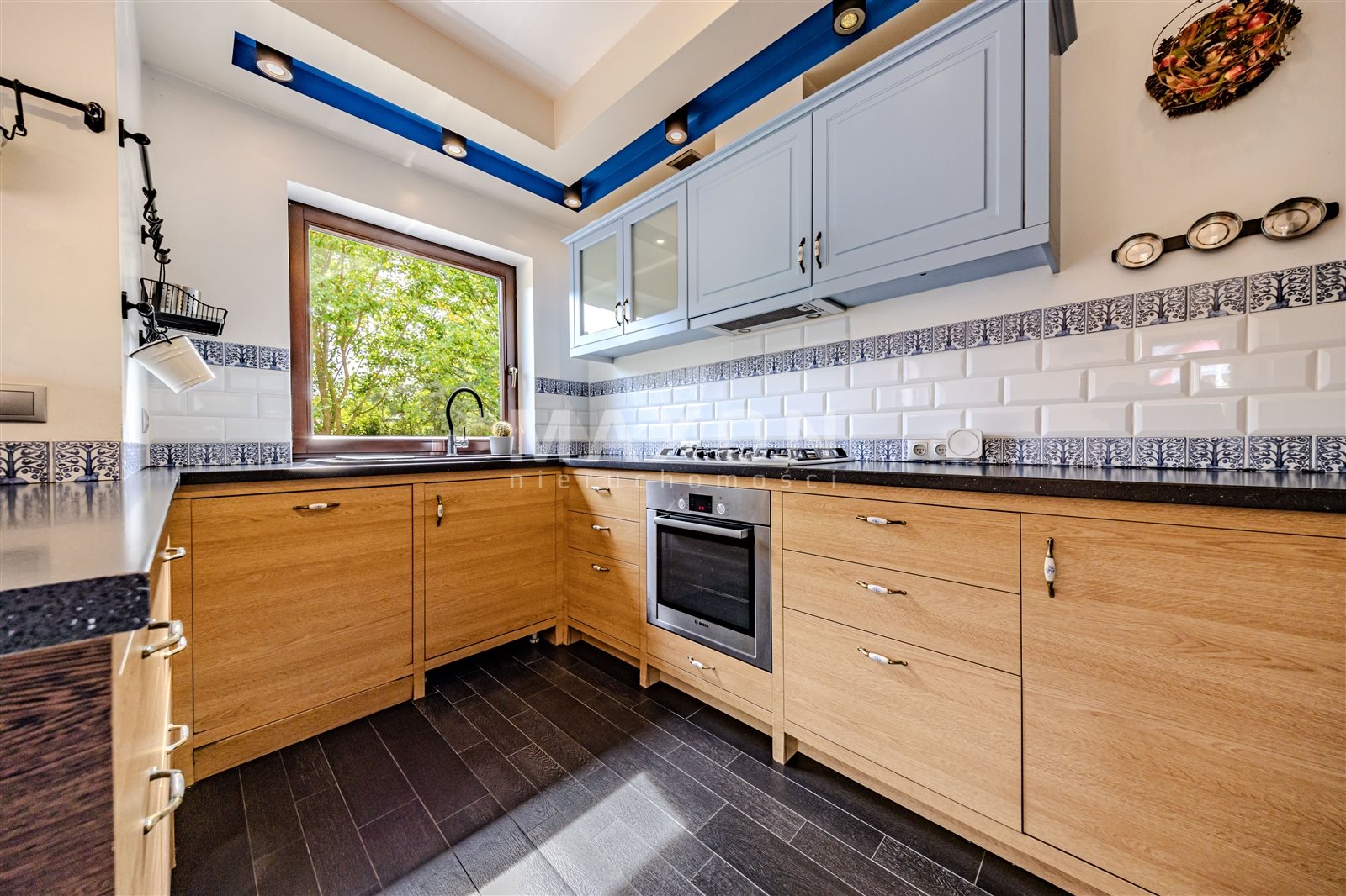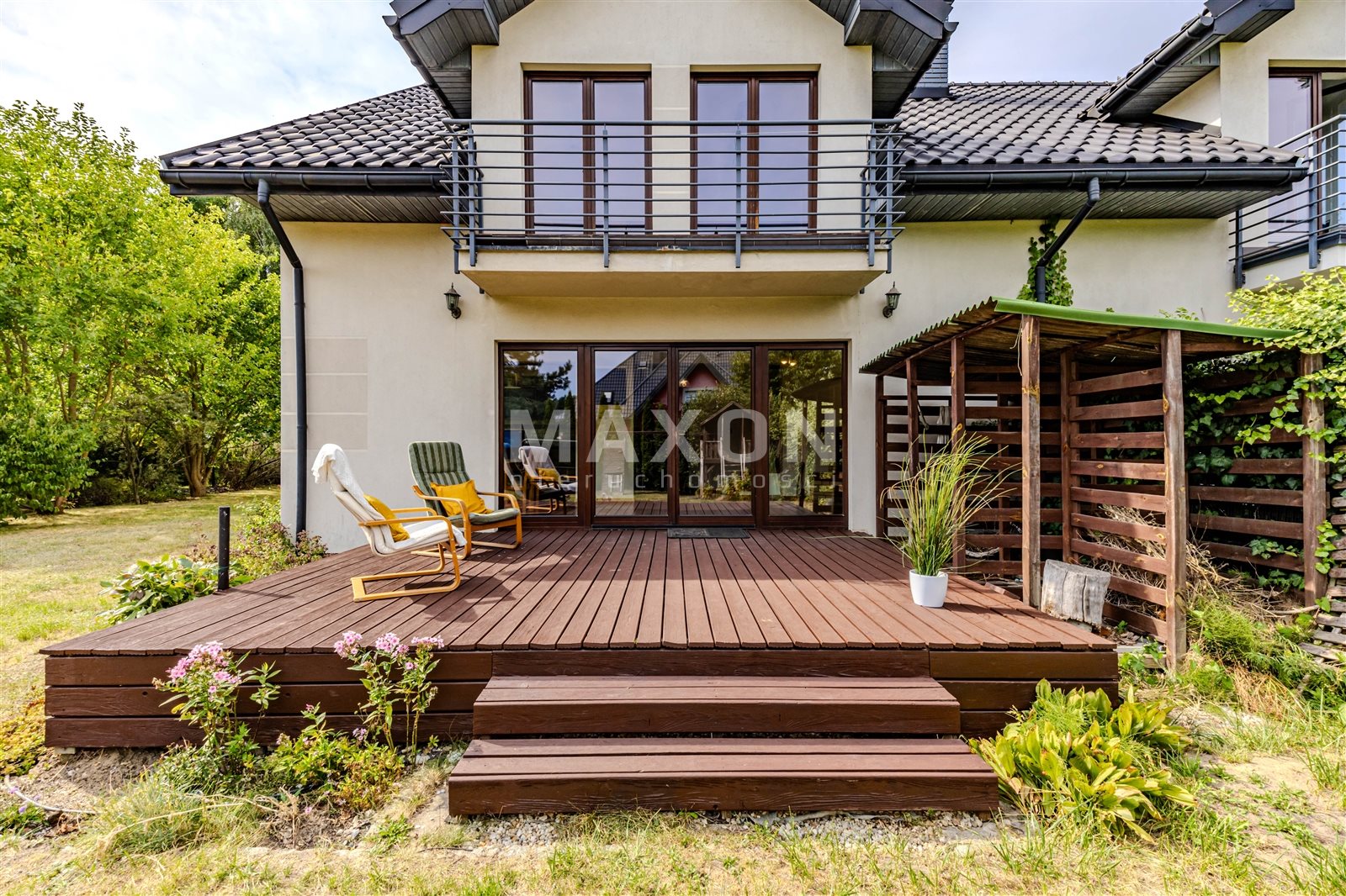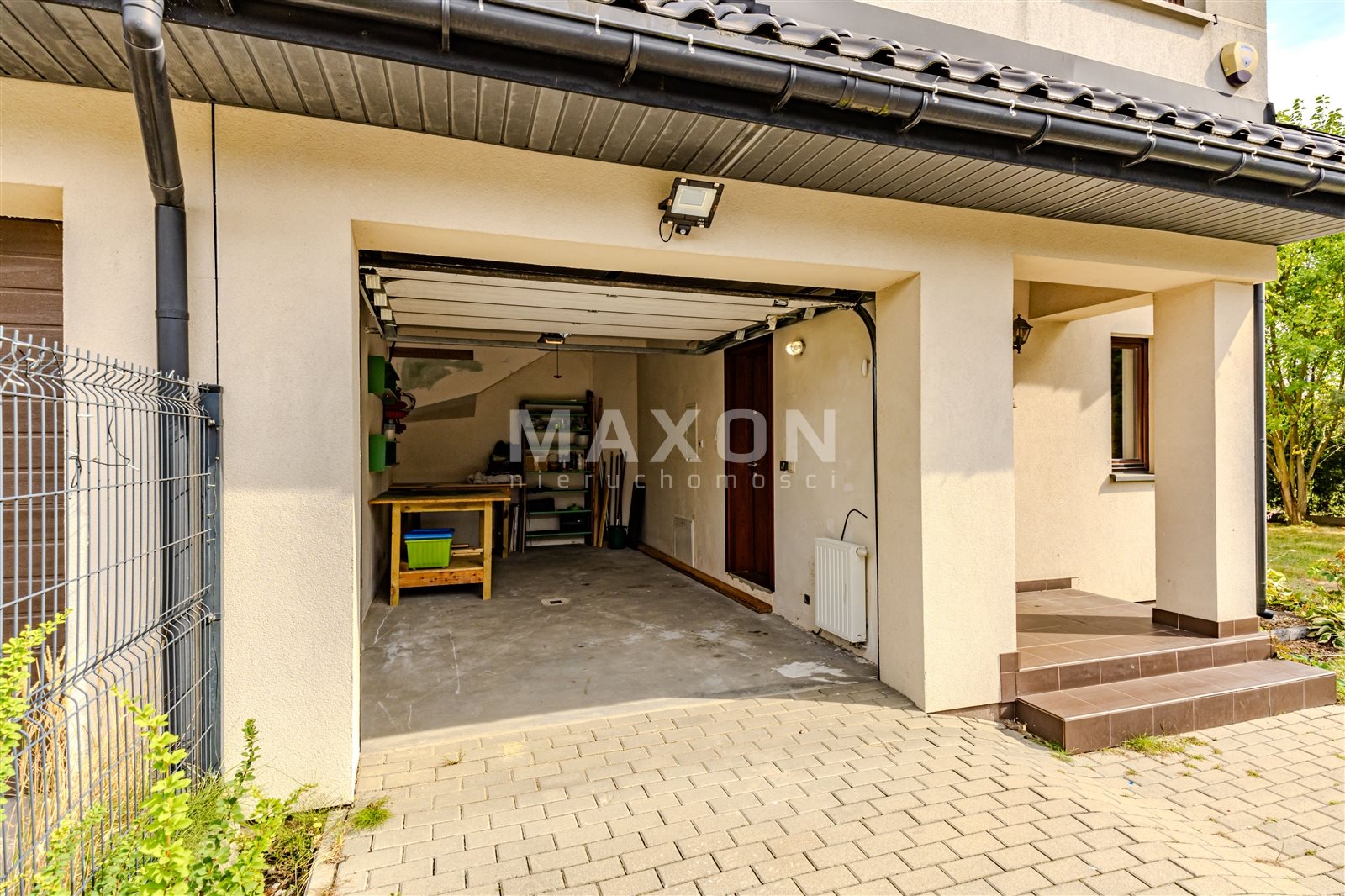 Zagospodarowany ogród z automatycznym systemem podlewania stanowi idealne miejsce do relaksu na świeżym powietrzu oraz spędzania wolnego czasu z rodziną. Na terenie posesji znajdują się miejsca parkingowe, a także garaż z automatyczną bramą, co zwiększa wygodę użytkowania.