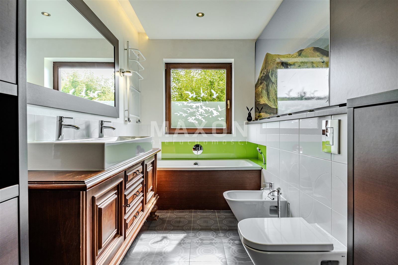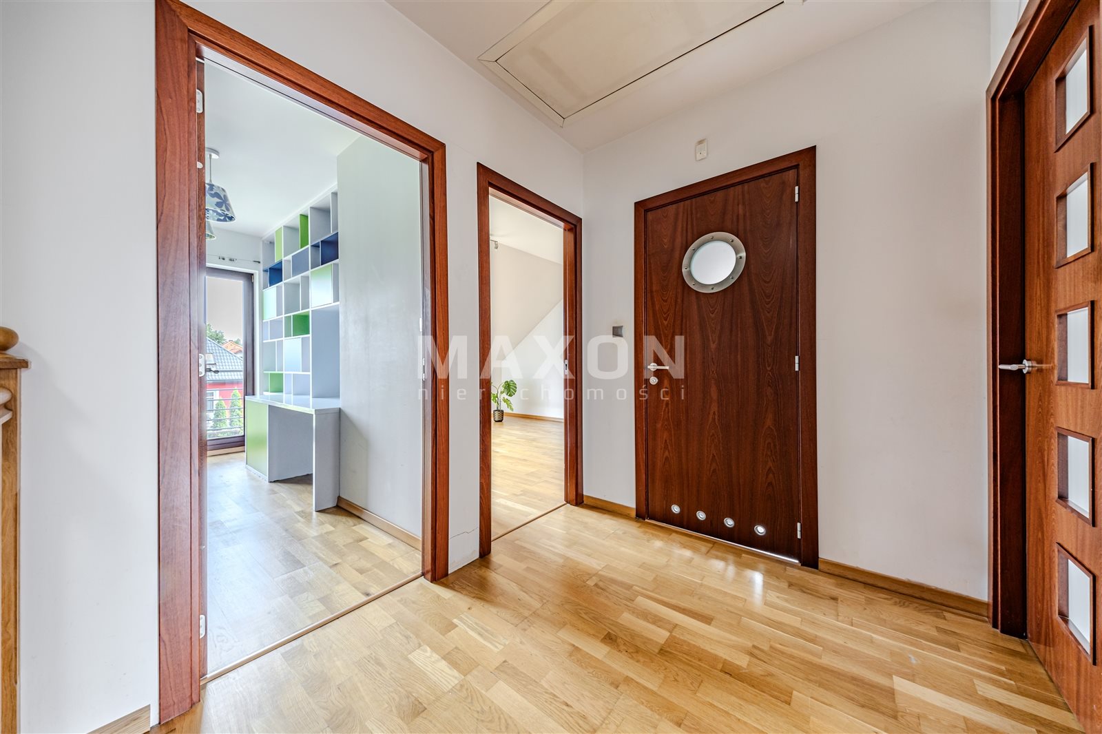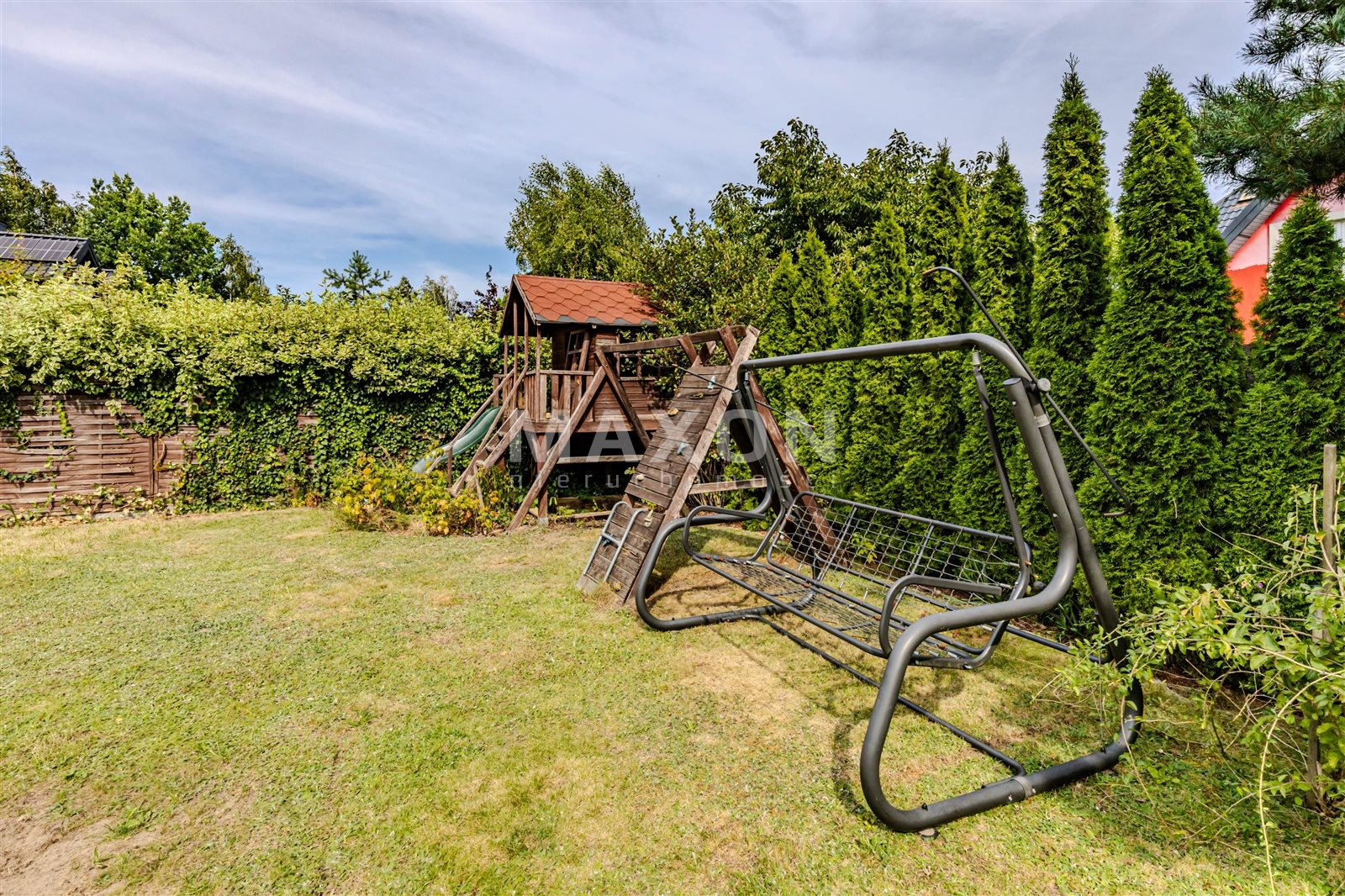 Zagospodarowany ogród z automatycznym systemem podlewania stanowi idealne miejsce do relaksu na świeżym powietrzu oraz spędzania wolnego czasu z rodziną. Na terenie posesji znajdują się miejsca parkingowe, a także garaż z automatyczną bramą, co zwiększa wygodę użytkowania.